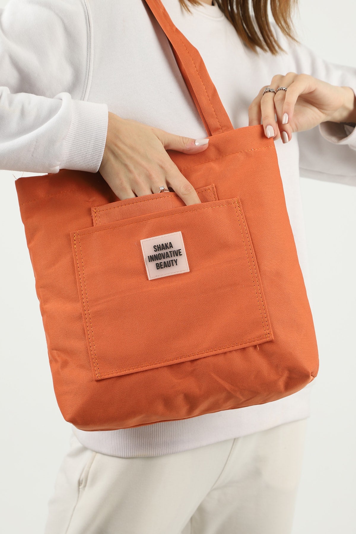 Orange U22 3-Fach vorne 2 Taschen Detaillierte Canvas Stoff Täglich Damen Arm und Schulter Tasche B:35 E:35