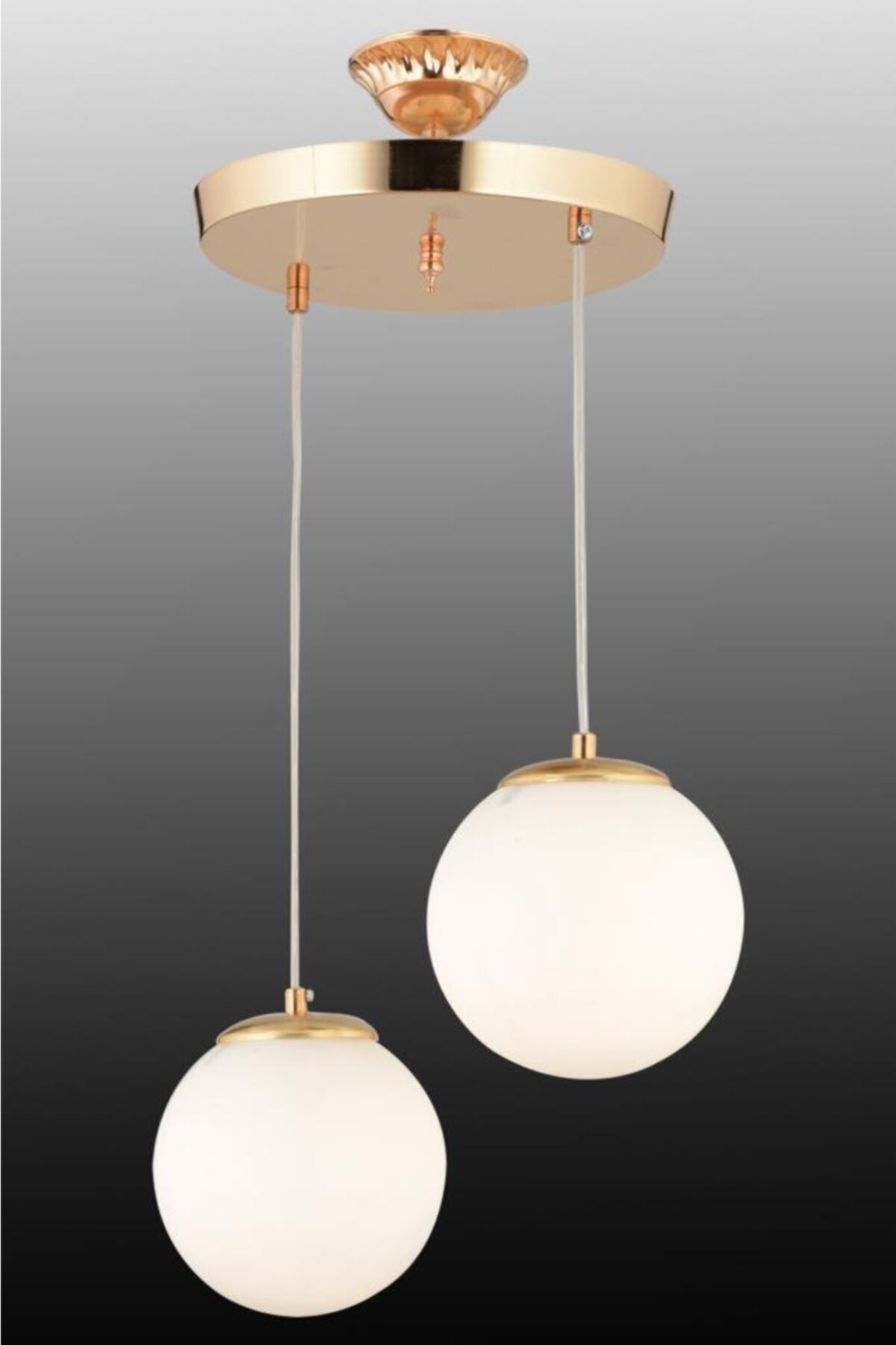 Pendelleuchte 2-teilig Gold Weiß Kugel Glas Kronleuchter