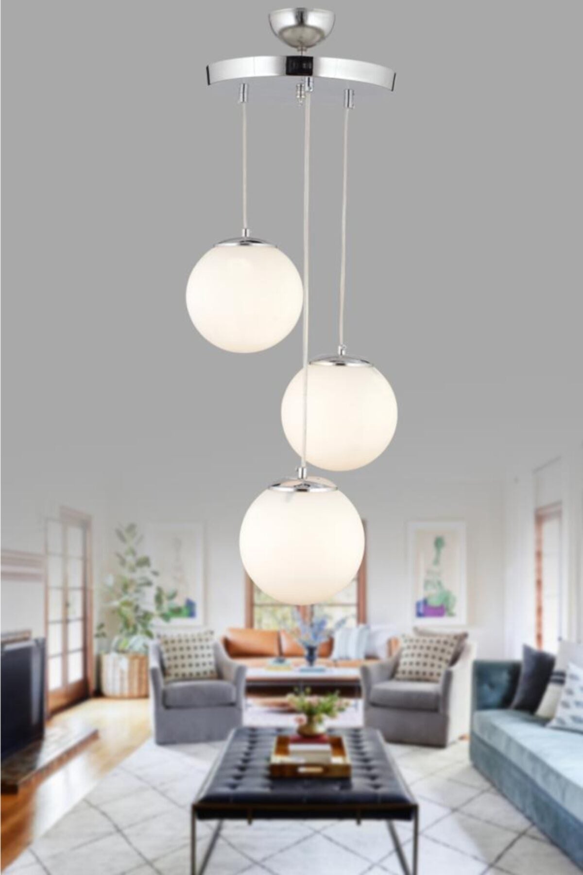 Pendelleuchte 3-teilig silber-weiß Kugelglas Kronleuchter