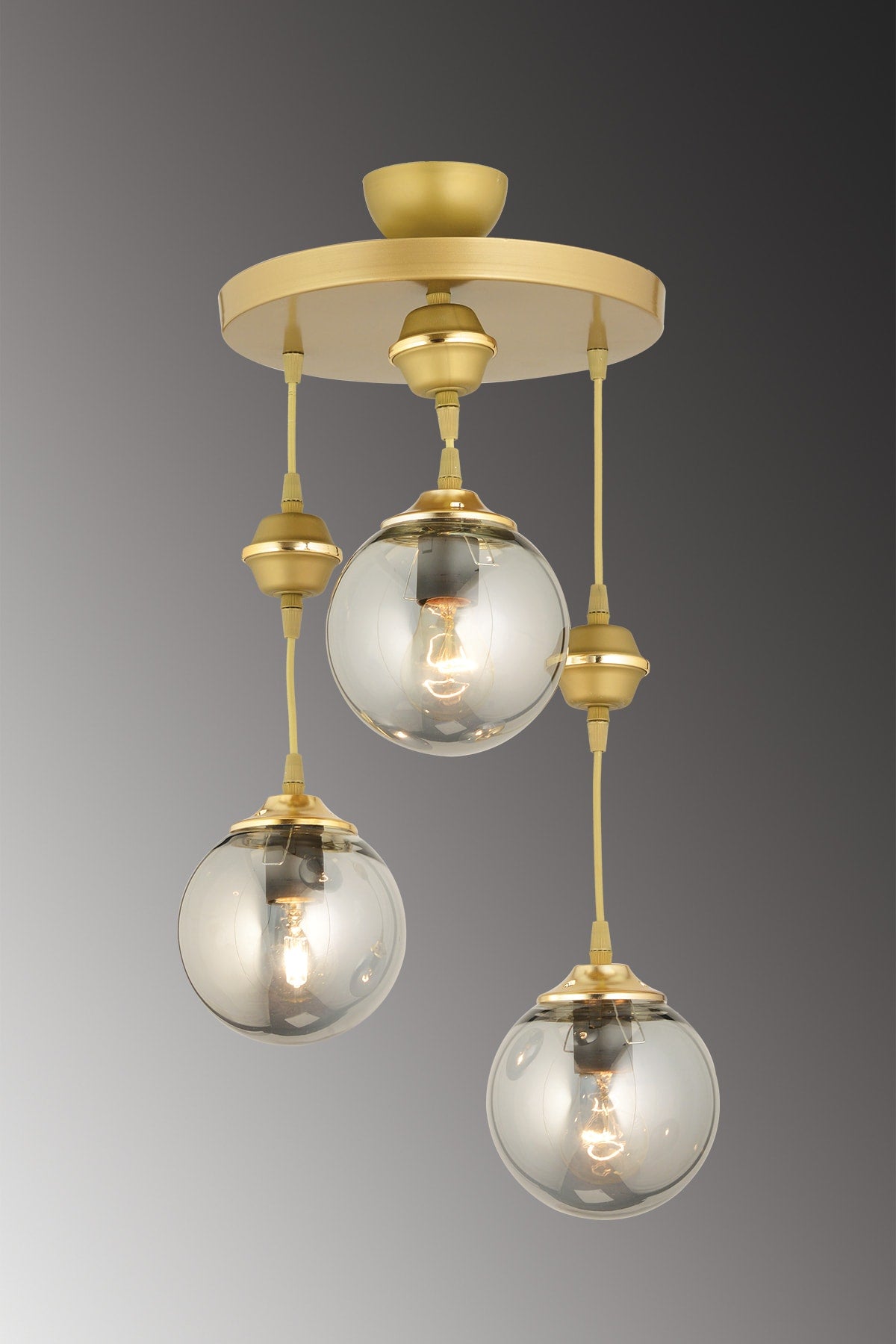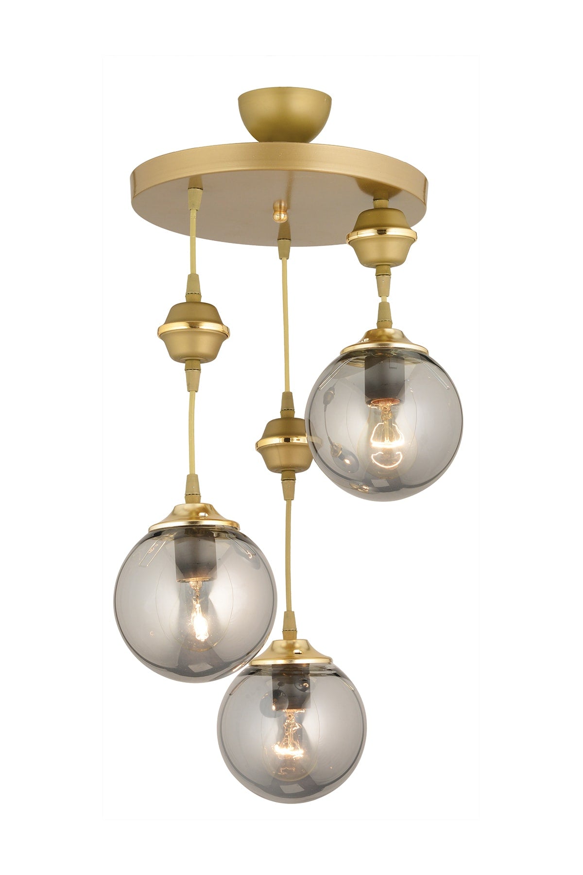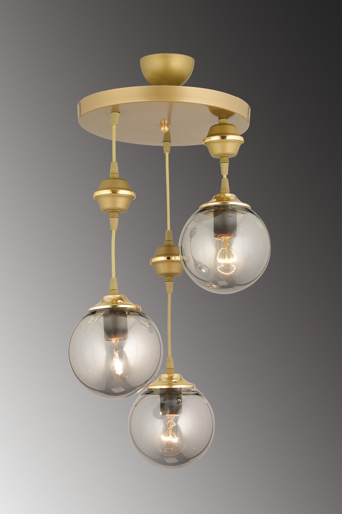 Pendelleuchte Tablett Antik 3-teilig Rauchglas nach unten gerichtet Luxus Kronleuchter