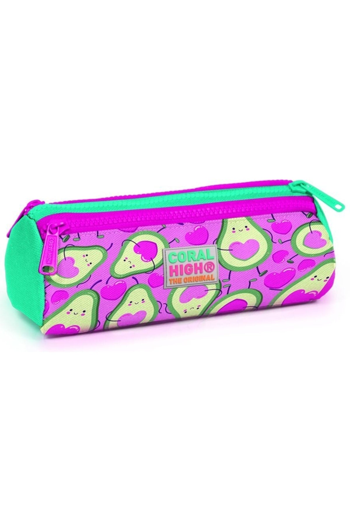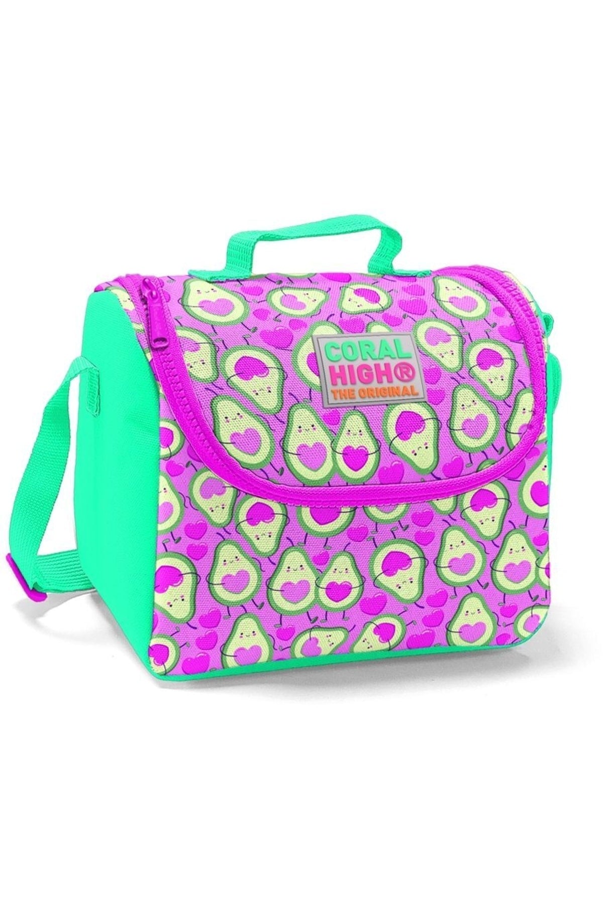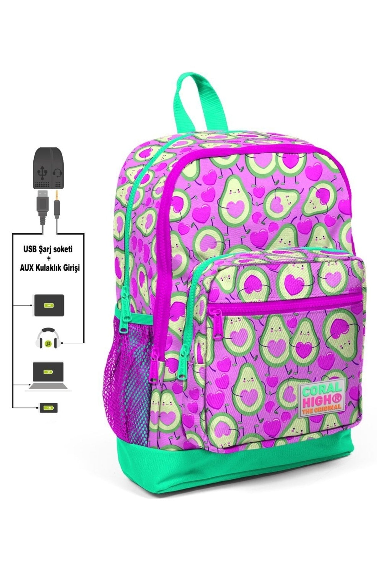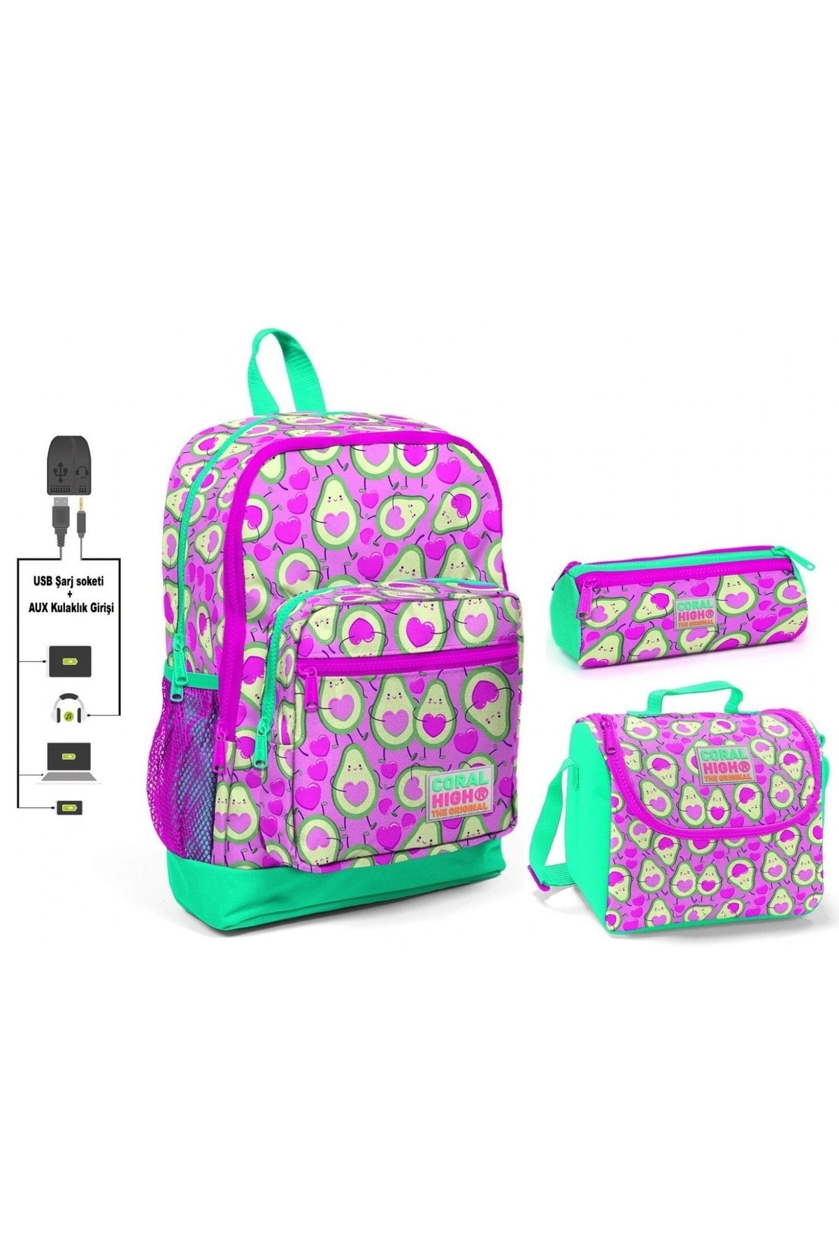 Rosa Schulranzen-Set für Mädchen mit Avocado-Print – USB-Ausgang