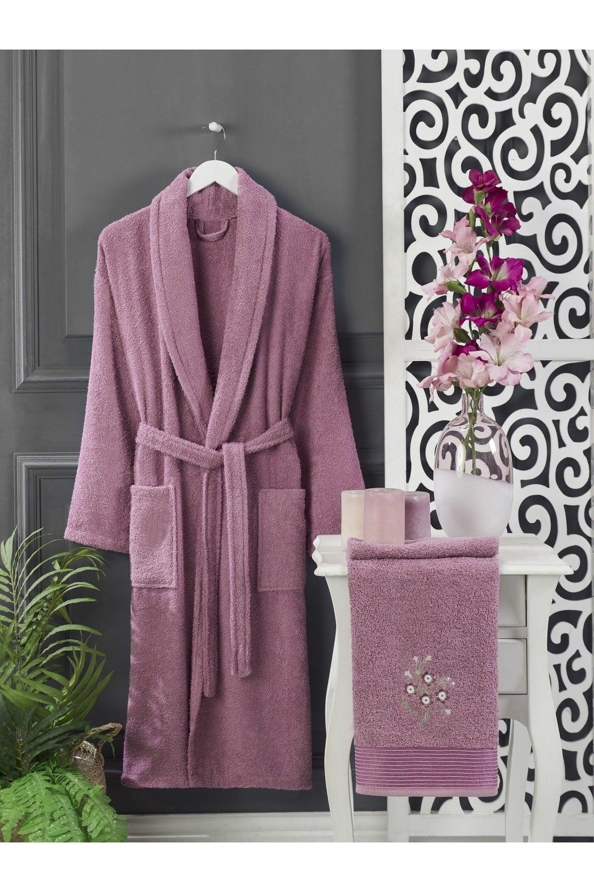 Pflaumen -Anthrazit -Handtuchbademantel 4 4