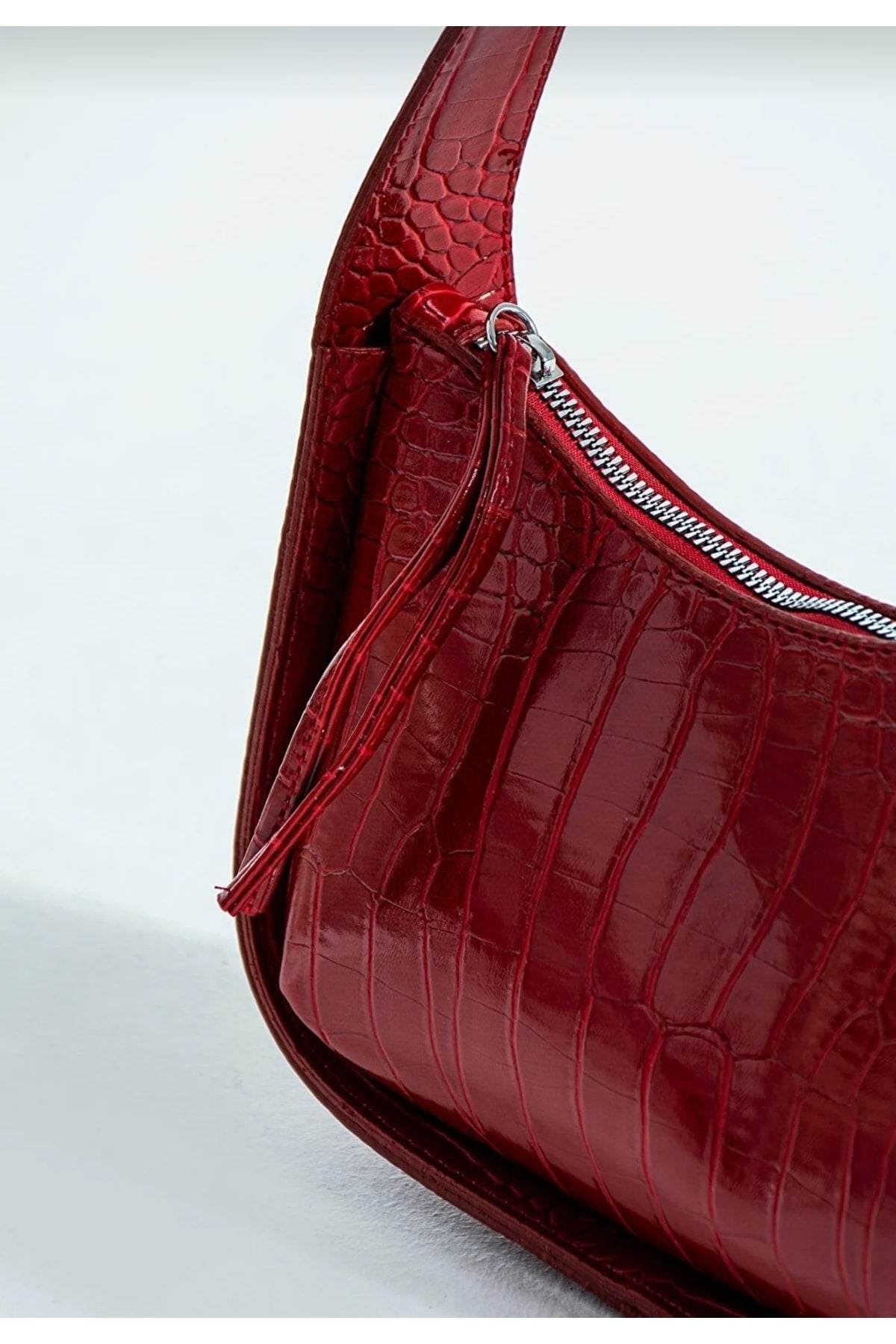 Rote Damen-Baguette-Tasche aus Krokodil