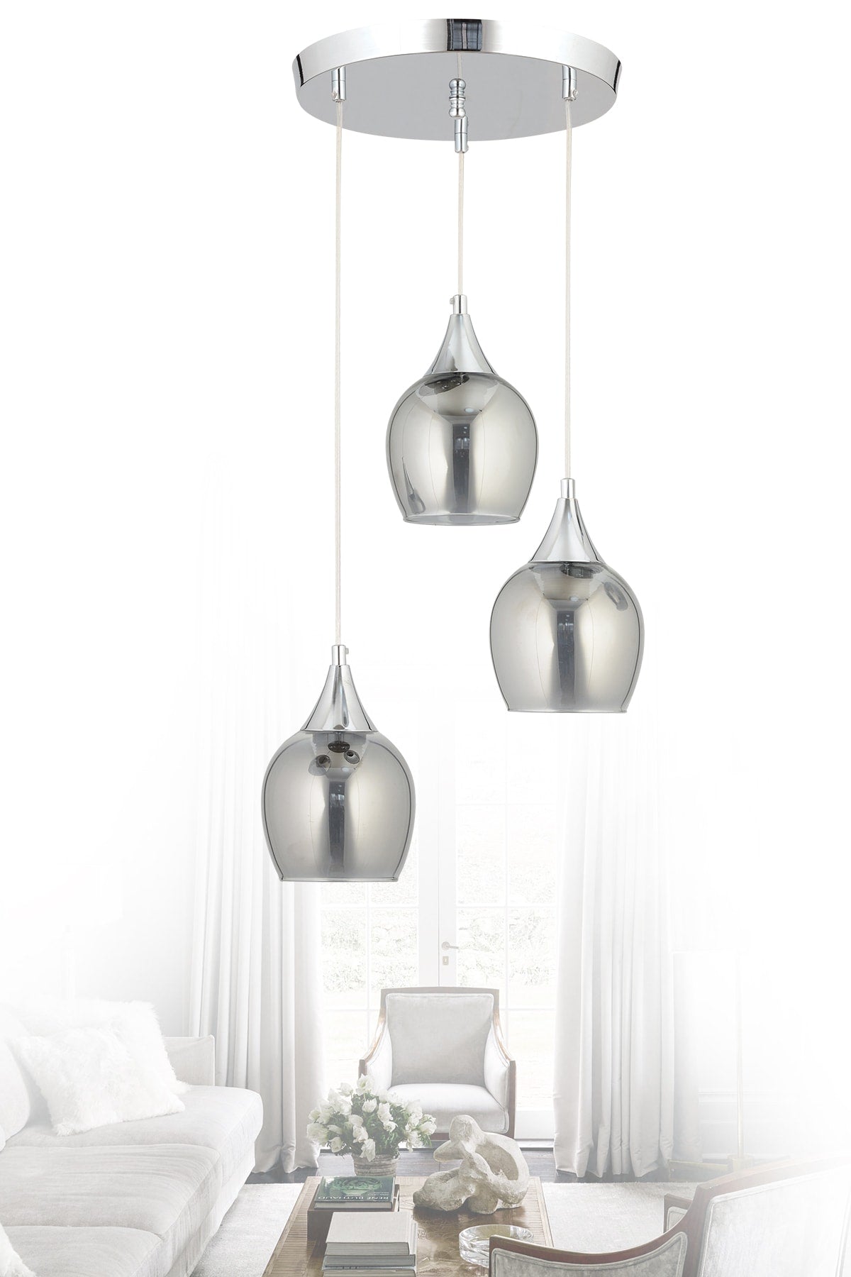 Sante 3-teilig Chrom Rauchglas Modern Pendelleuchte Kronleuchter Wohnzimmer Küche Zimmer Flur Kronleuchter