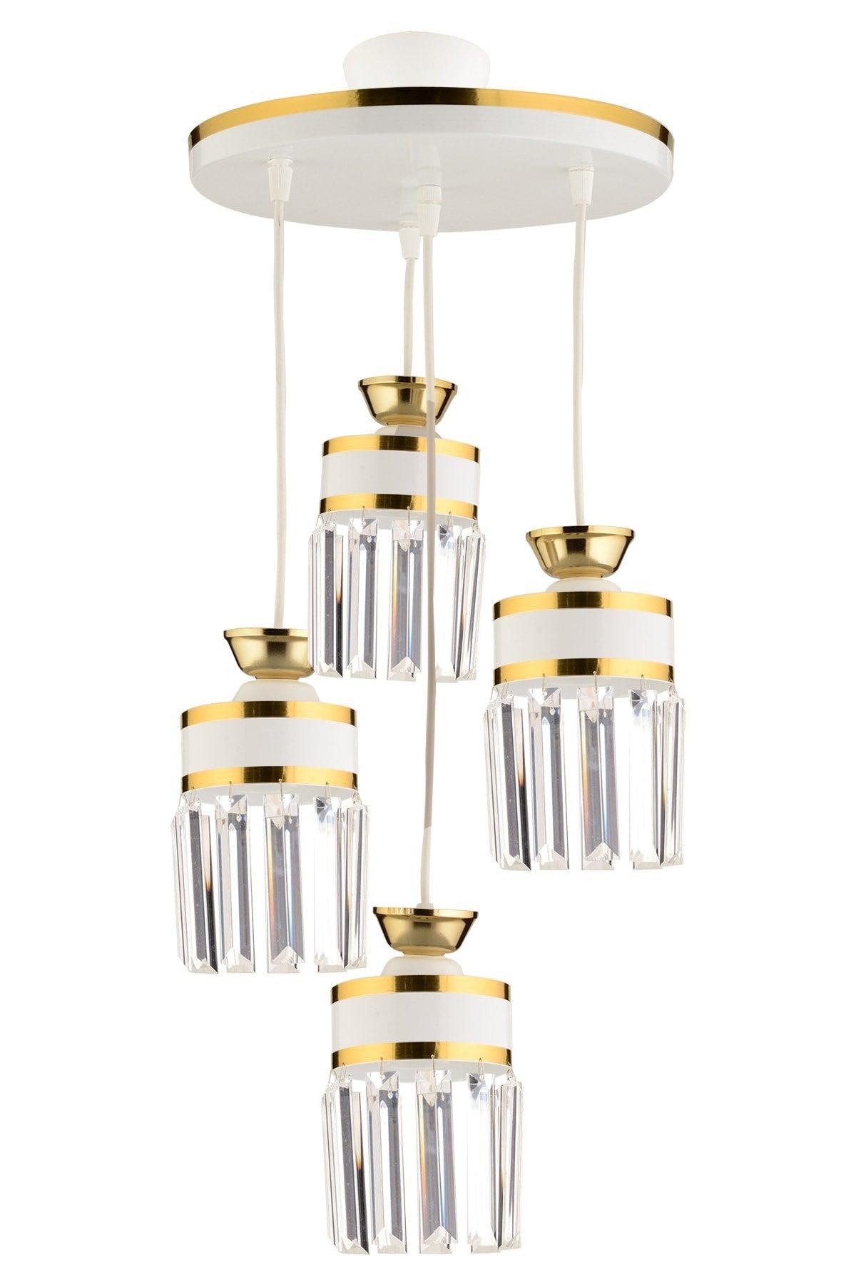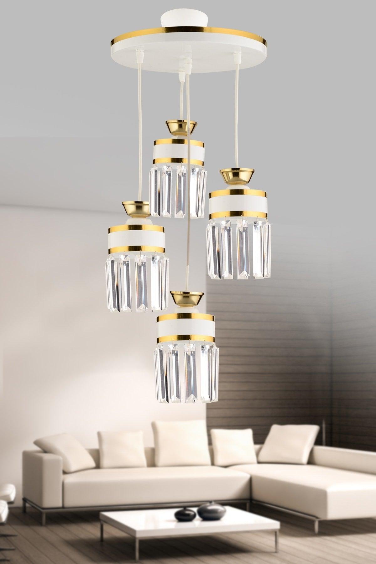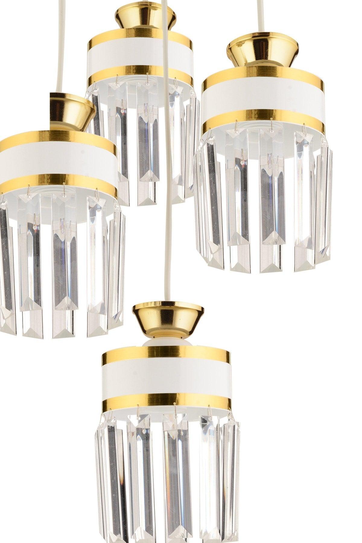 4. September weiß gelb vergoldete Pendellampe Kristallsteinschale Luxus Wohnzimmer Kronleuchter
