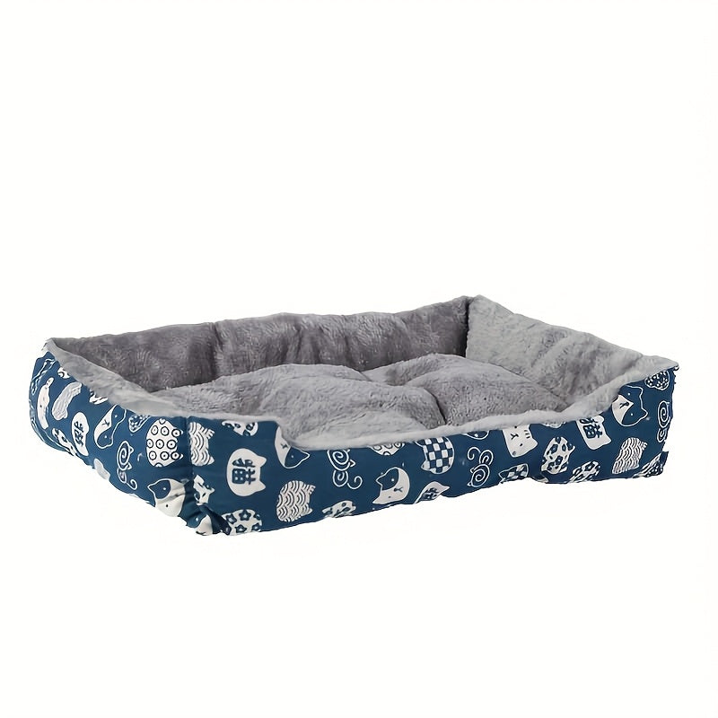 Soft Pet Bed Mat 1pc Soft Pet Bed Mat - Cute Blue Paw print, Non-Slip Rectangular dog & cat mattress, Easy-Clean Surface for Small, Medium Dogs & Cats, Indoor Floor or Furniture