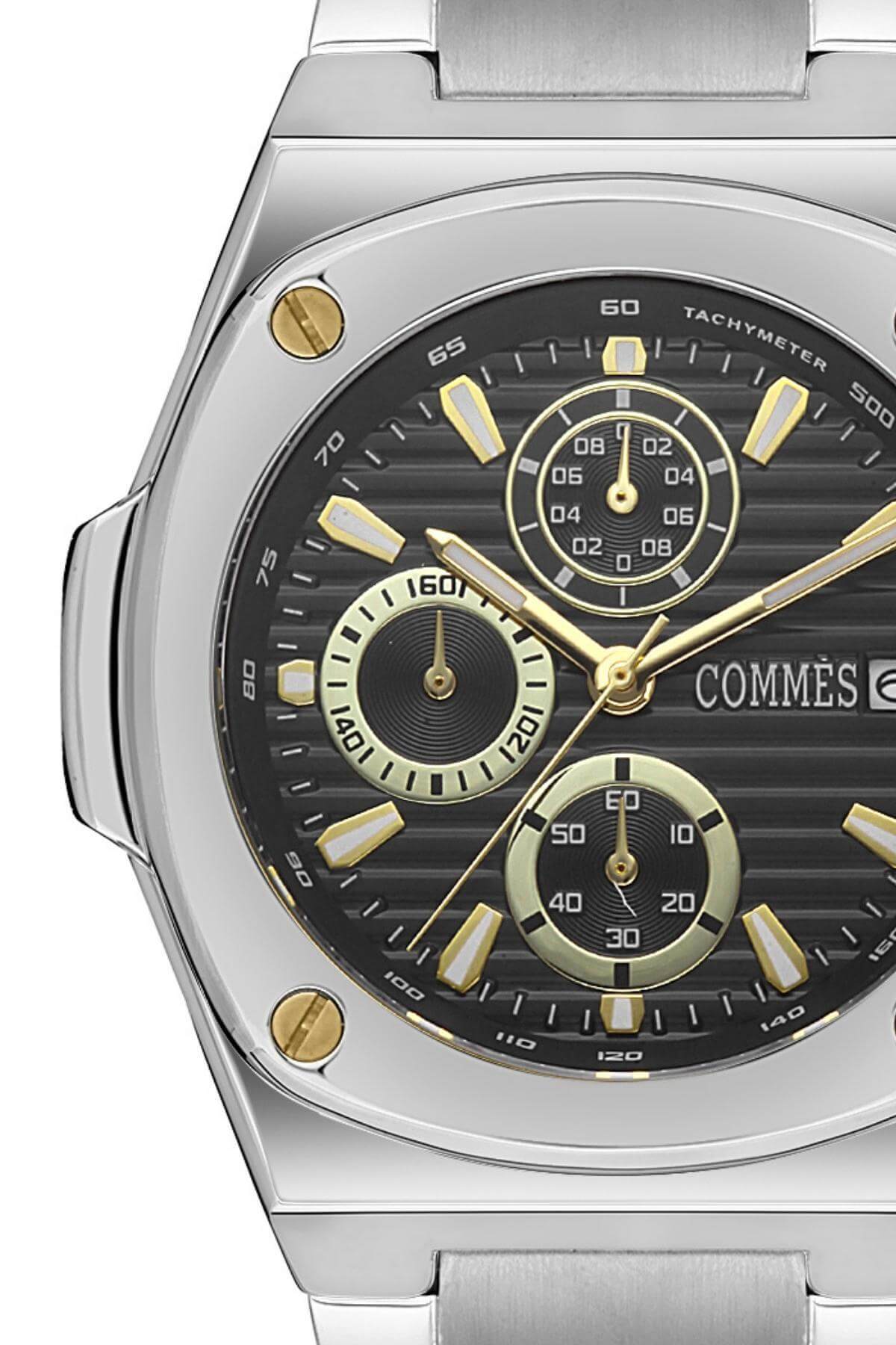 Commes Herren-Armbanduhr mit Stahlarmband, silber-schwarz, Stoppuhr und Kalender, cm1939-sggbs. Kratzfestes Hardlex-Kristallglas mit Spezialschliff. Langlebiges analoges japanisches Quarzwerk. Edelstahlgehäuse. Edelstahlarmband. Mit Kalender- und Stoppuhr-Optik. Wasserdicht bis 3 atm. Spezielles Design. Wird in einer stilvollen Geschenkbox geliefert. Alle unsere Produkte haben 2 Jahre Garantie. Das Gehäuse hat ein klassisches rundes Design. Das Uhrwerk ist standardmäßig batteriebetrieben und verfügt über ein Quarzwerk. Verbesserte Version für besseres Verständnis und bessere Suchfunktion. Geeignet für Benutzer, die detaillierte und zuverlässige Produktinformationen suchen.