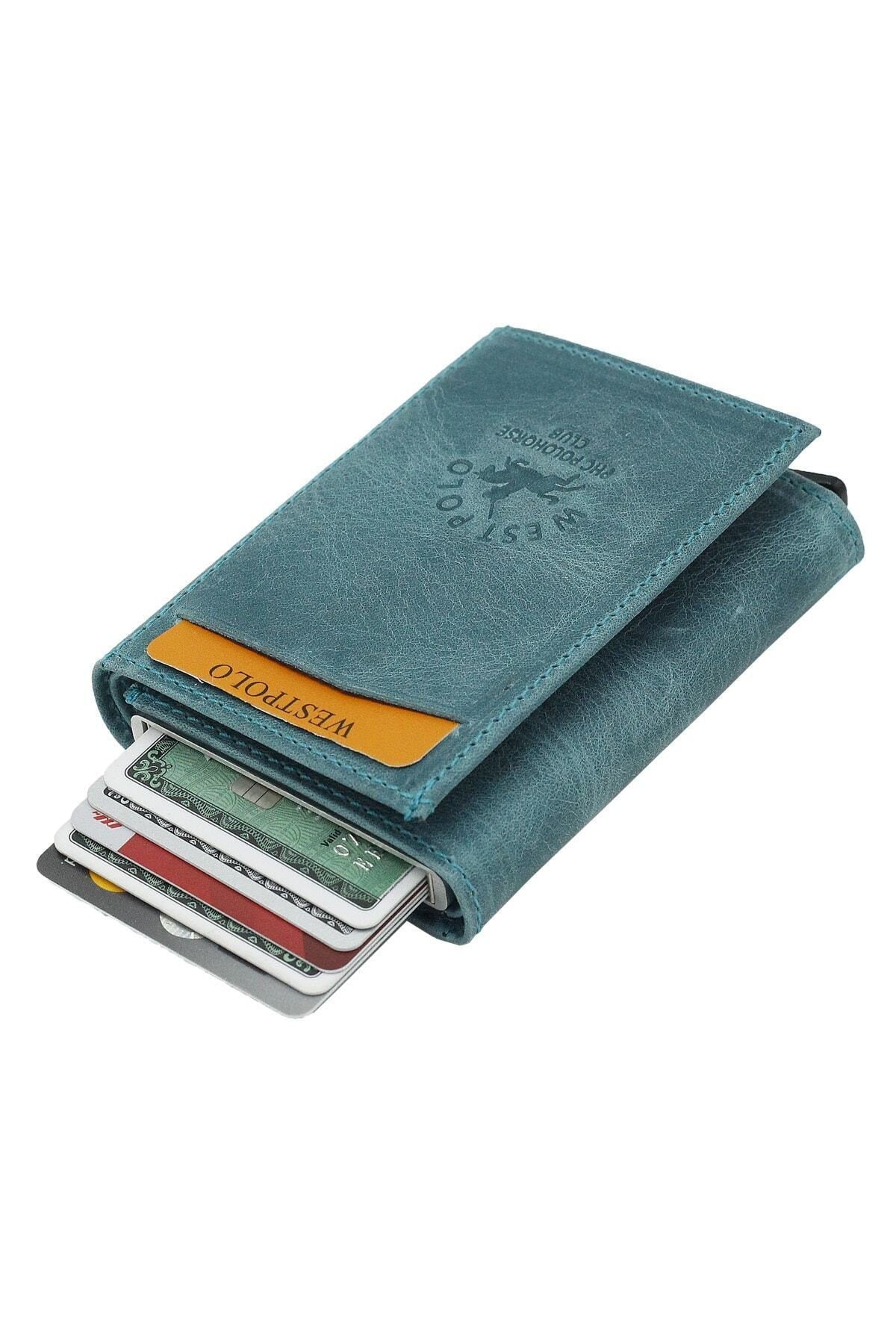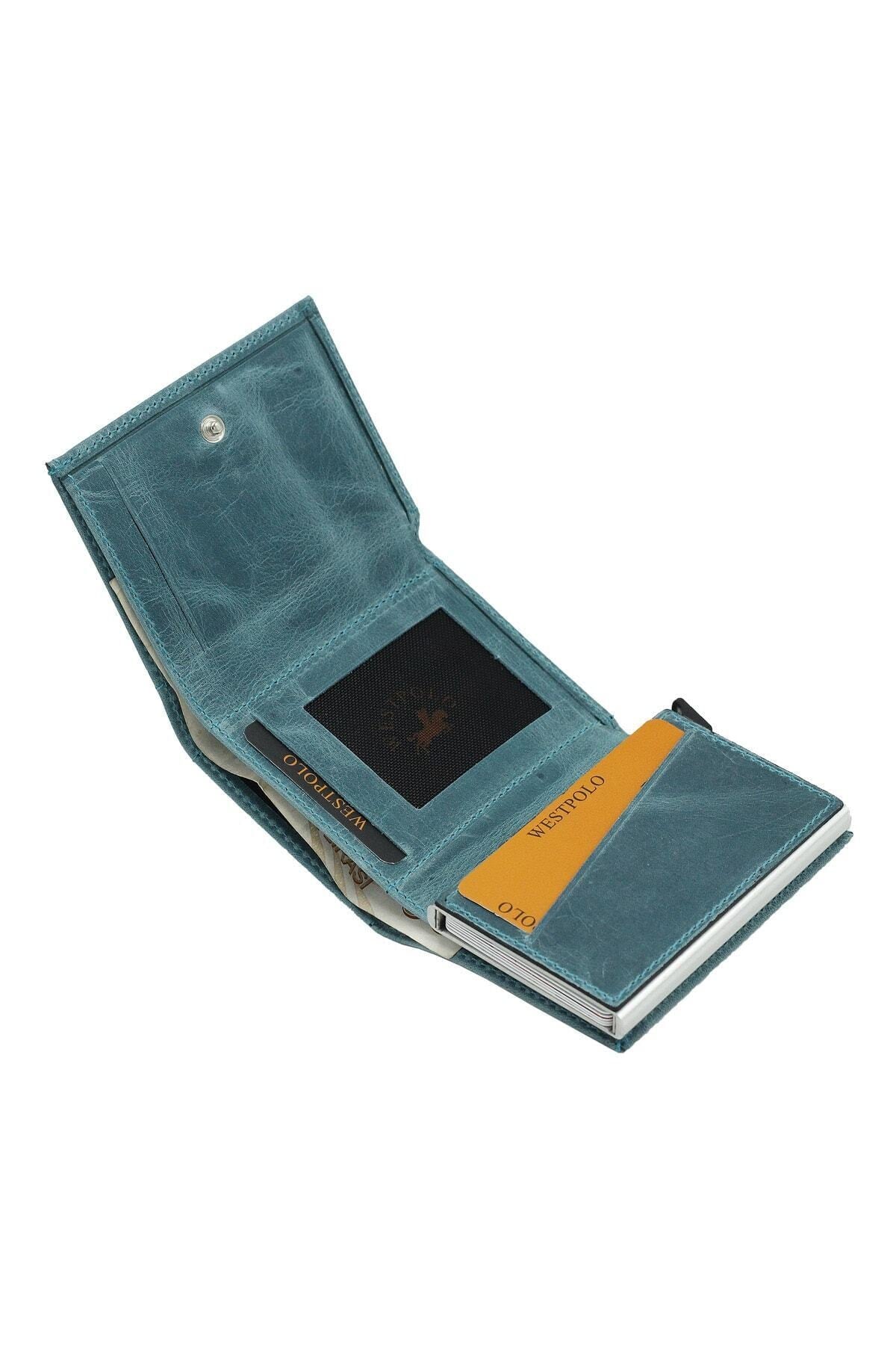 Unisex Türkis Echtleder Mechanismus Geldbörse Kartenhalter