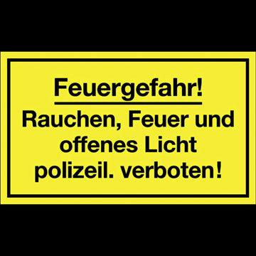 Warnschild - Feuergefahr! Zigaretten, Feuer und offene Lichtpolizei. Verbot!