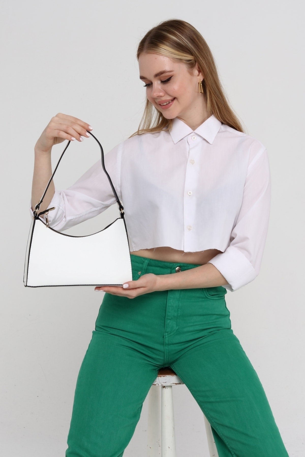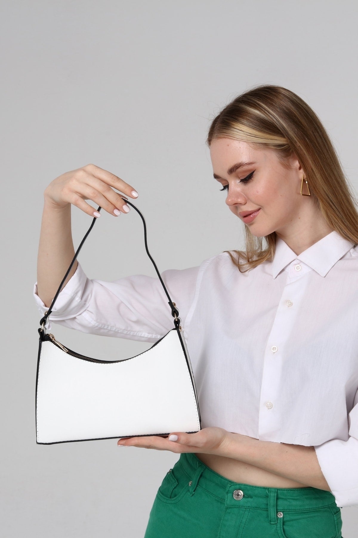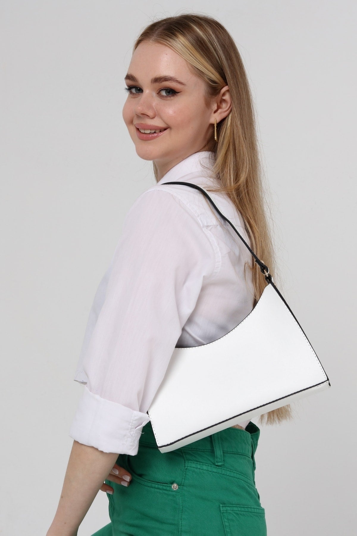 Weiße Baguette Baguette Hand- und Schultertasche Gc009001