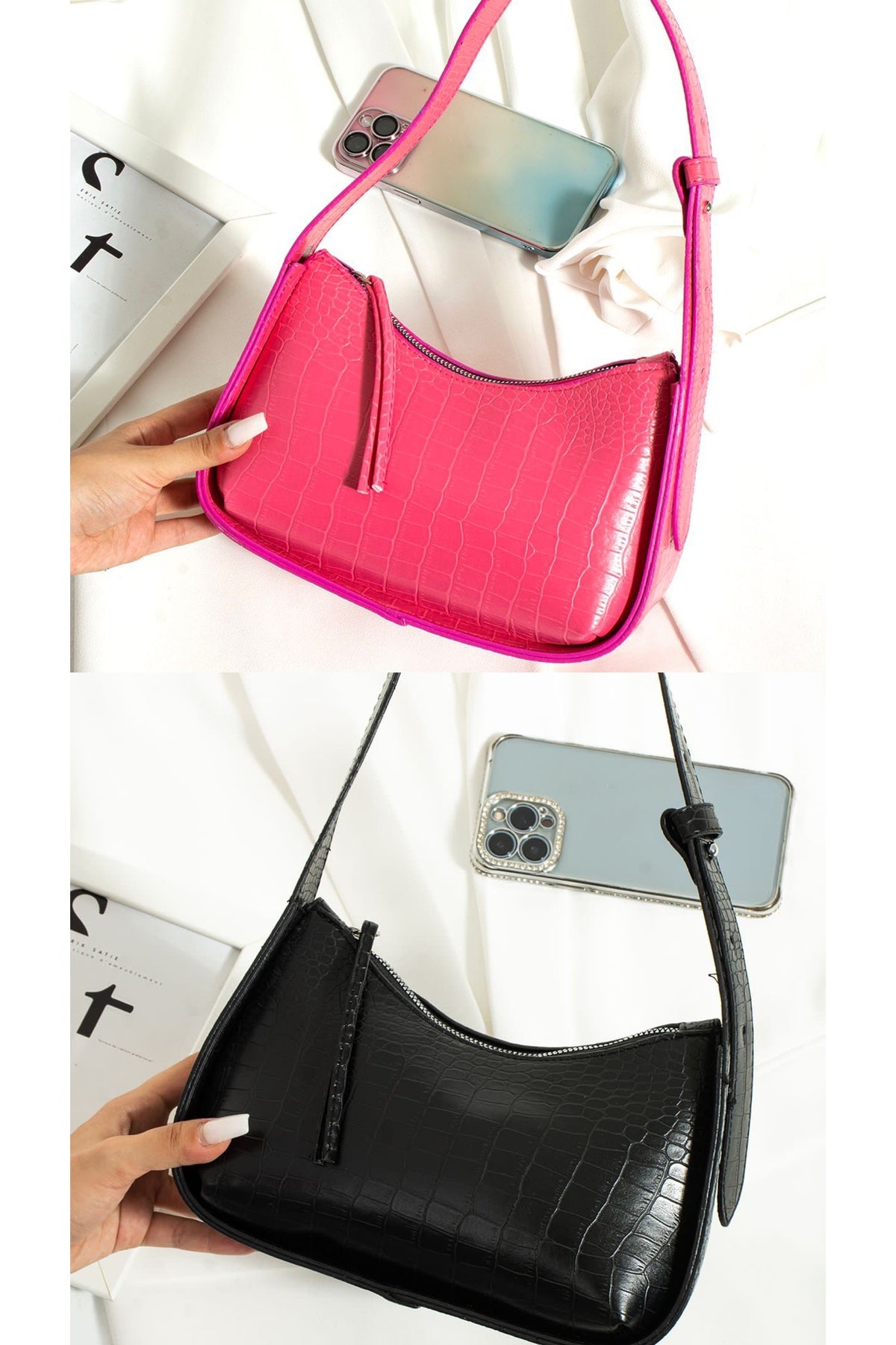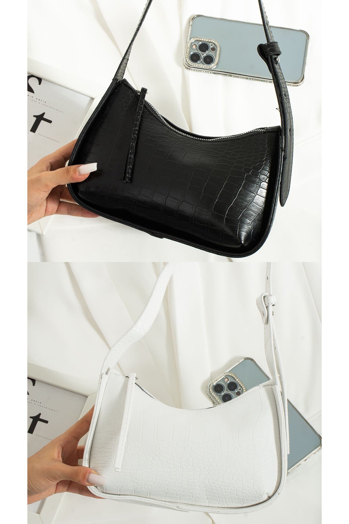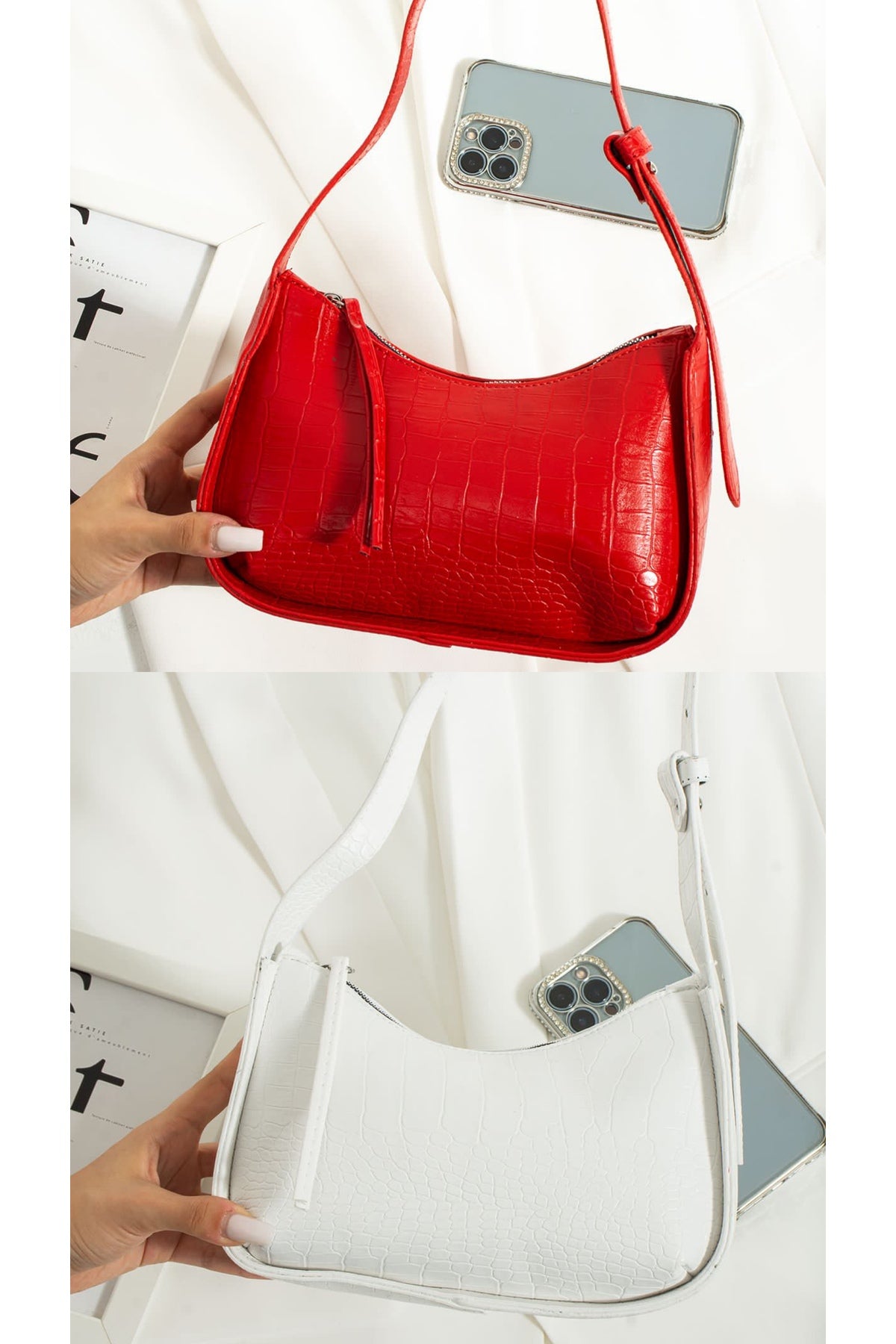 2er-Pack Baguette-Taschen mit Krokodilmuster für Damen, stilvolle Handtasche für den täglichen Gebrauch