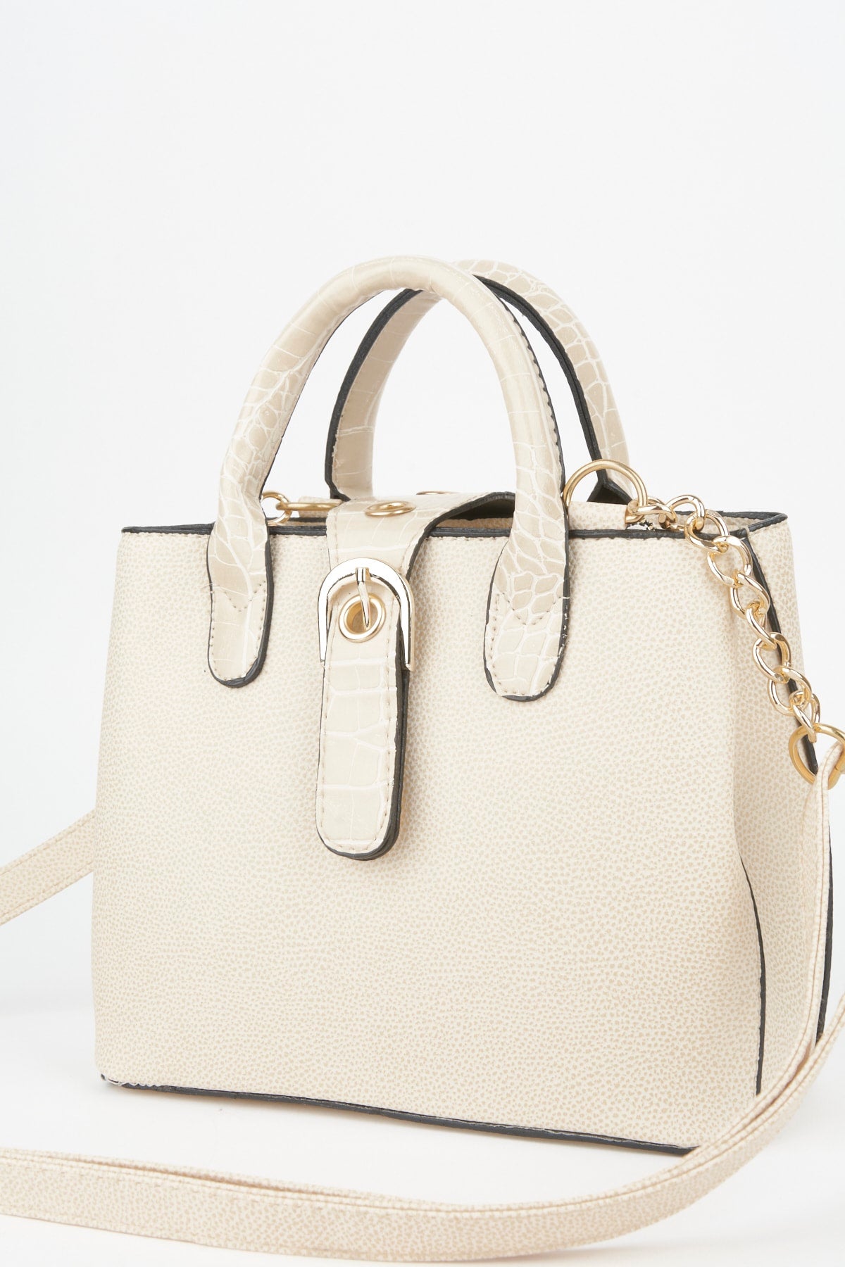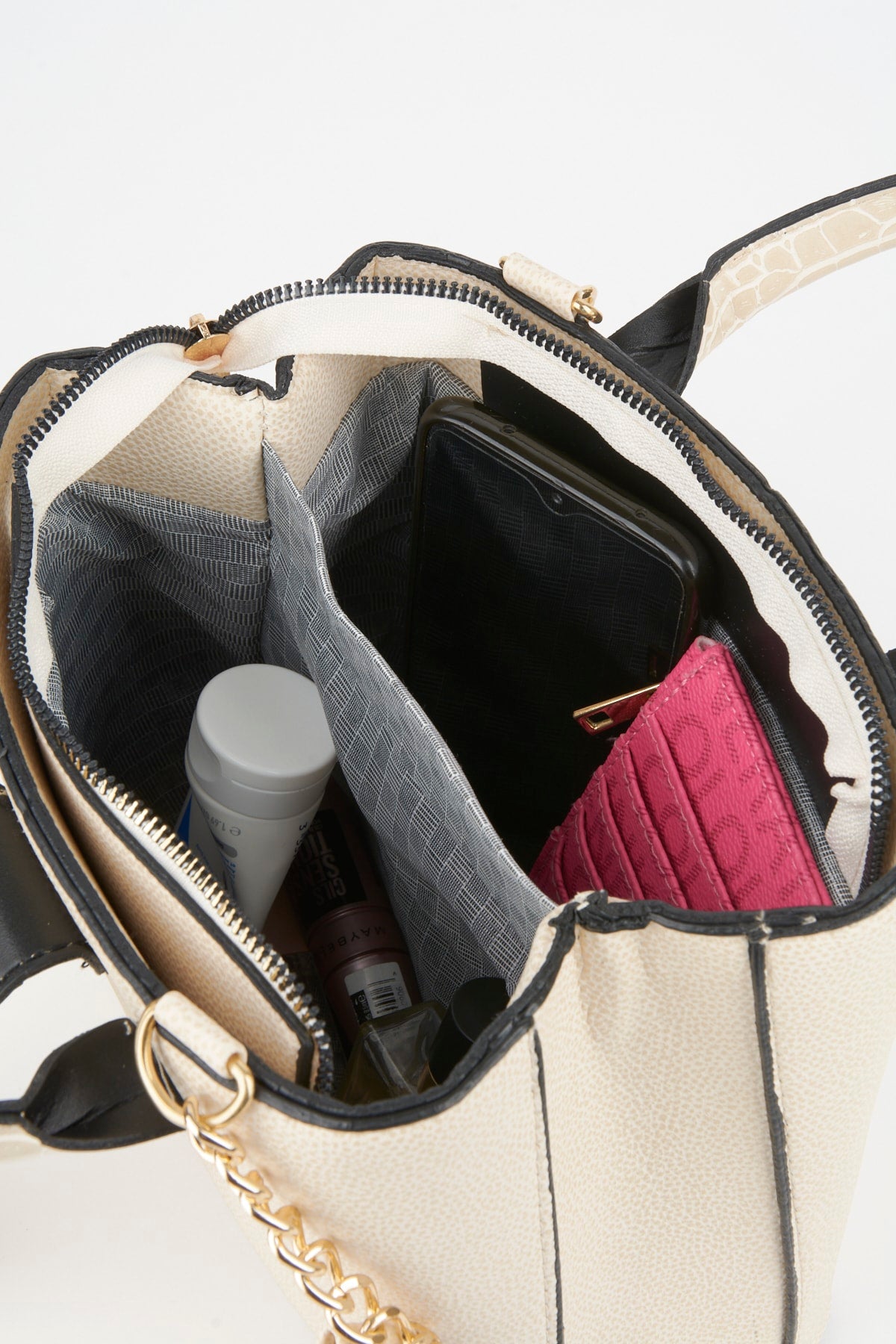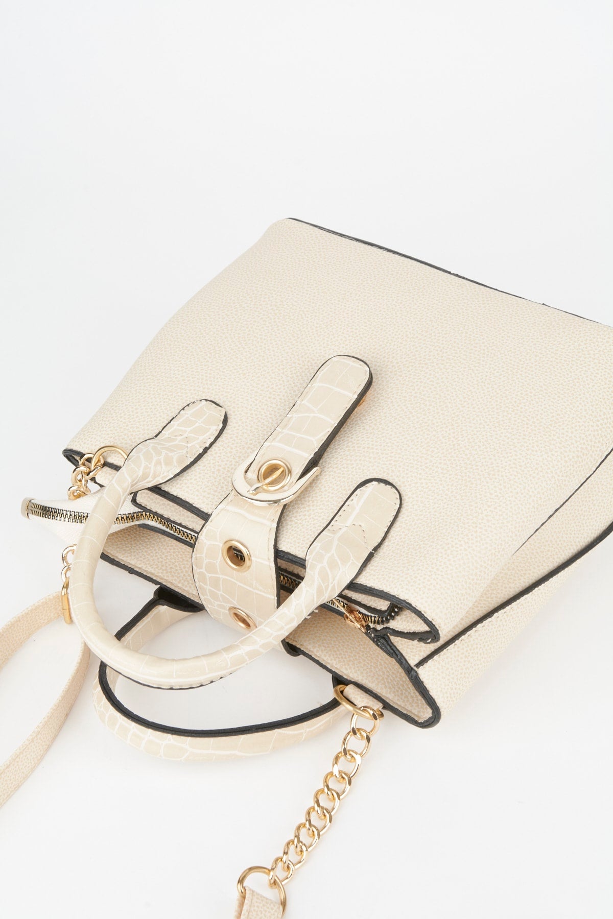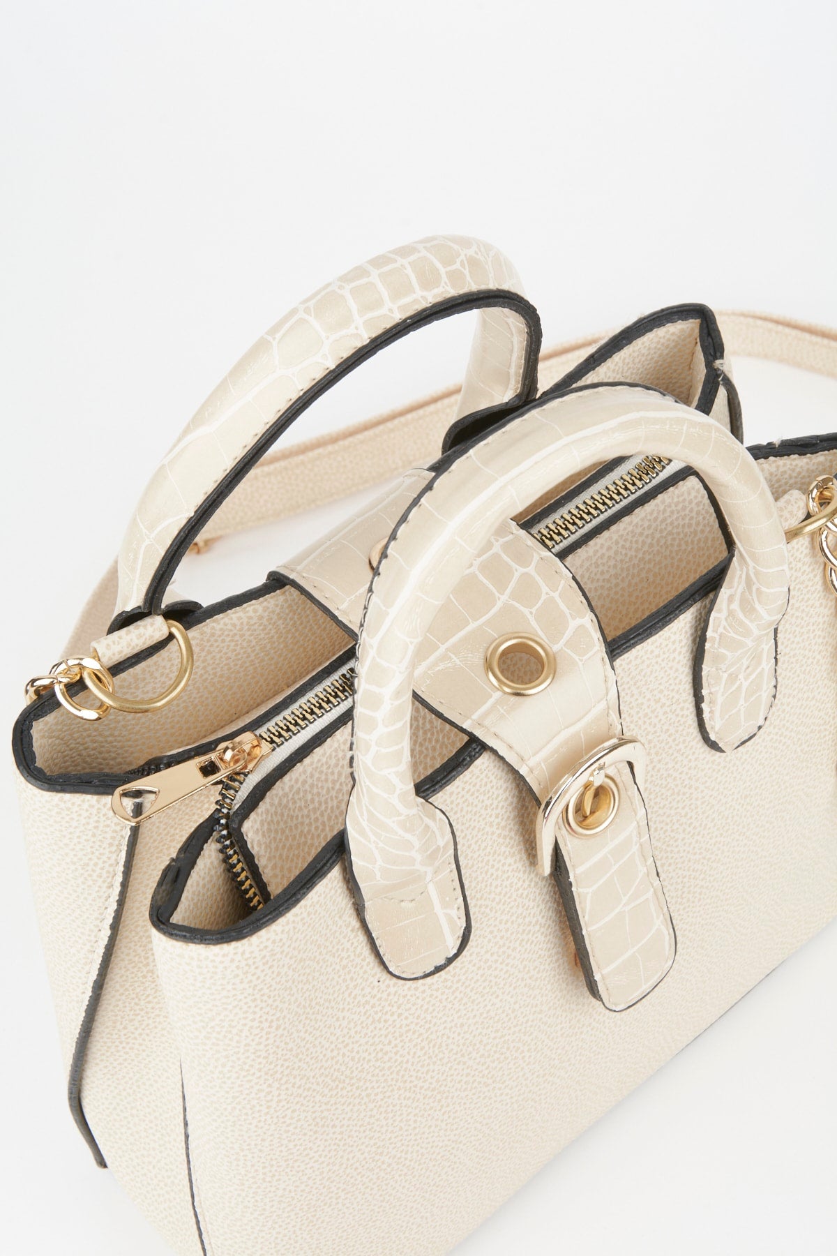 Cremefarbene Hand- und Schultertasche mit Kroko-Griffriemen und 2 Fächern sowie Druckknopf-Reißverschluss für Damen