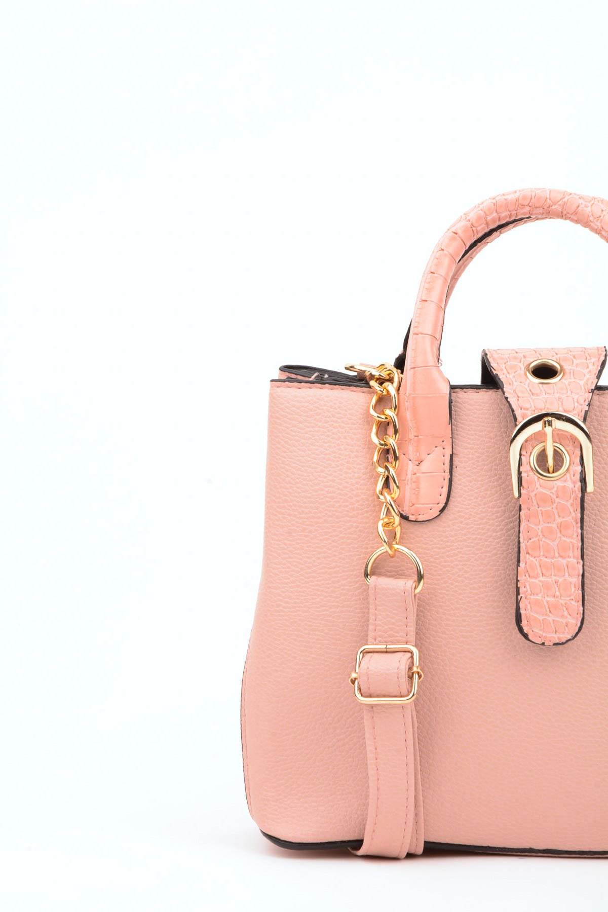 Damen Puder-Kroko-Griffriemen 2 Fächer Druckknopf-Reißverschluss Hand- und Schultertasche