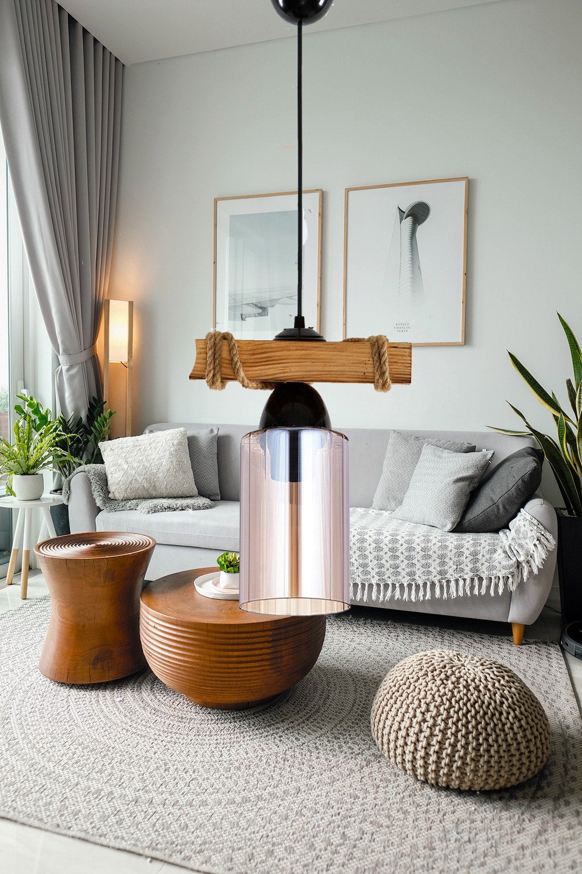 Holzseil Einzelpendellampe Honigglas Kronleuchter, Wohnzimmer Kronleuchter, Küche, Kronleuchter