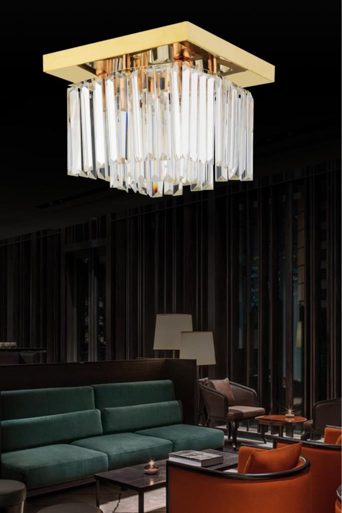 Yasemin 30 cm quadratischer Kronleuchter aus goldenem Kristallstein