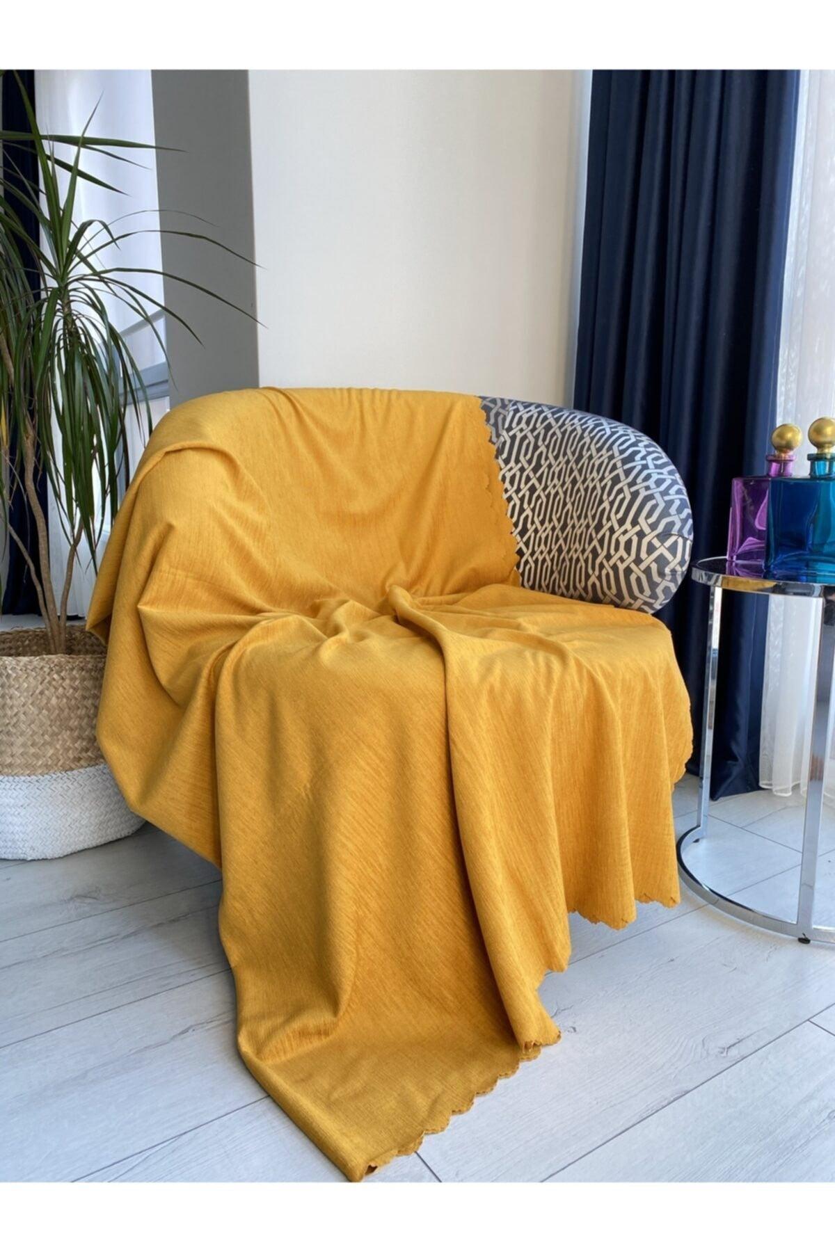 Yellow Mustard Color Non-Slip Chenille Sofa Cover Throw Throw Sofa Cover - Swordslife