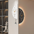 Double-Sided Wall Clock with Light, Voice-Activated Light-Up Clock, Wall Clock, Corner Double-Sided Wall Clock, Home Corner Clock, Silent Clock, Wall Clock, Living Room, Dining Room, Kitchen, Black And White Half-Moon Shape, Arc Shape