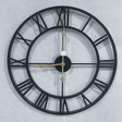 large retro modern wall clock with roman large black metal frame white silent non ticking no alarm ringing easy to read large face for living room bedroom office decor iron