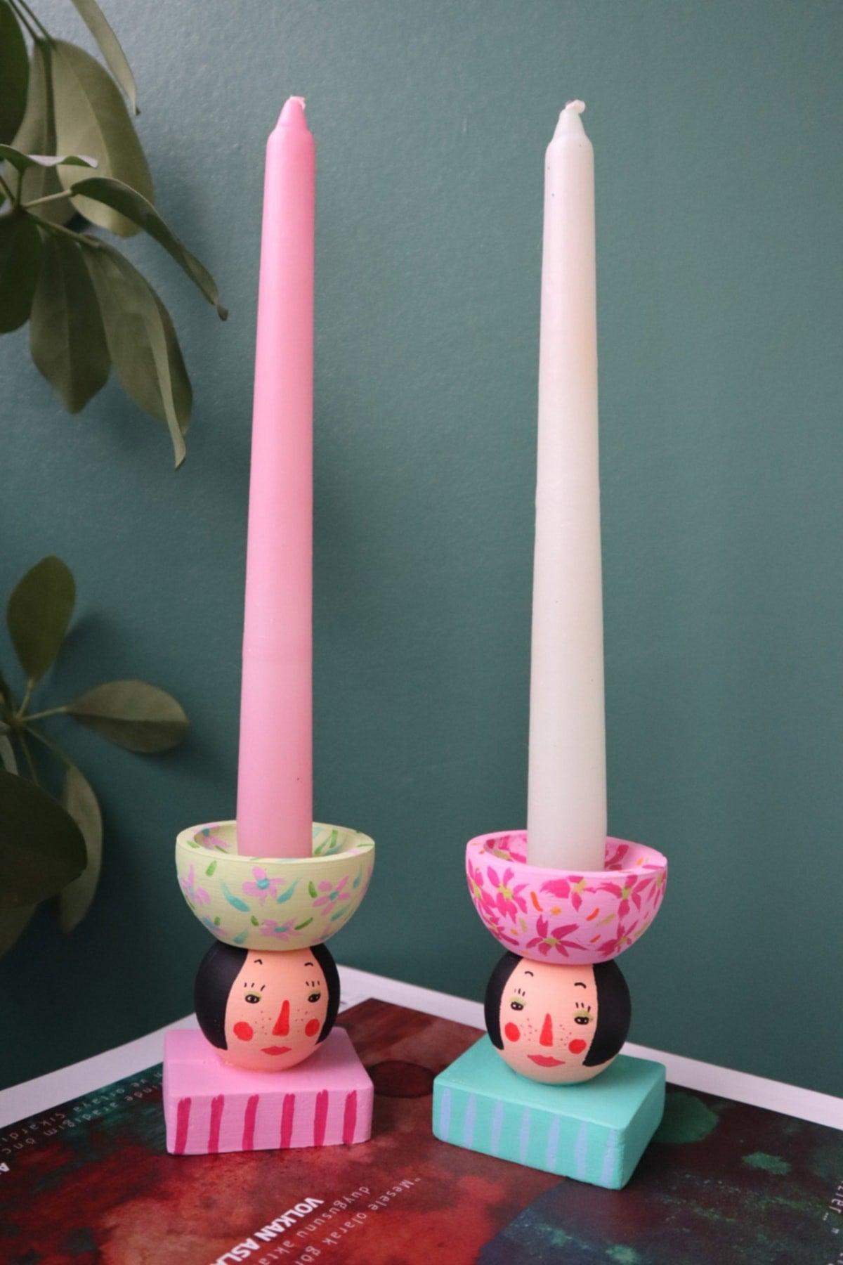 Column Kerzenhalter Set Hand Mademoiselle Mathilda Grape Green - Pastel Rosa