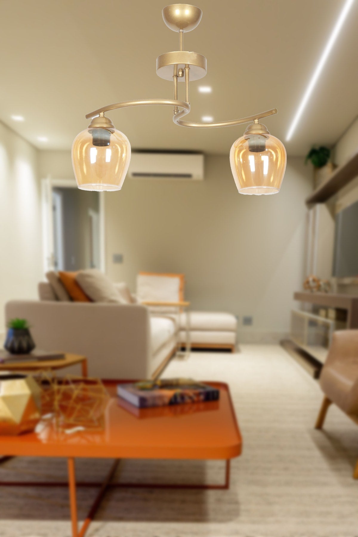 Fuji Modernes Design Antikes Gehäuse Honigglas Wohnzimmer - Küche - Schlafzimmer 2-teiliger Kronleuchter