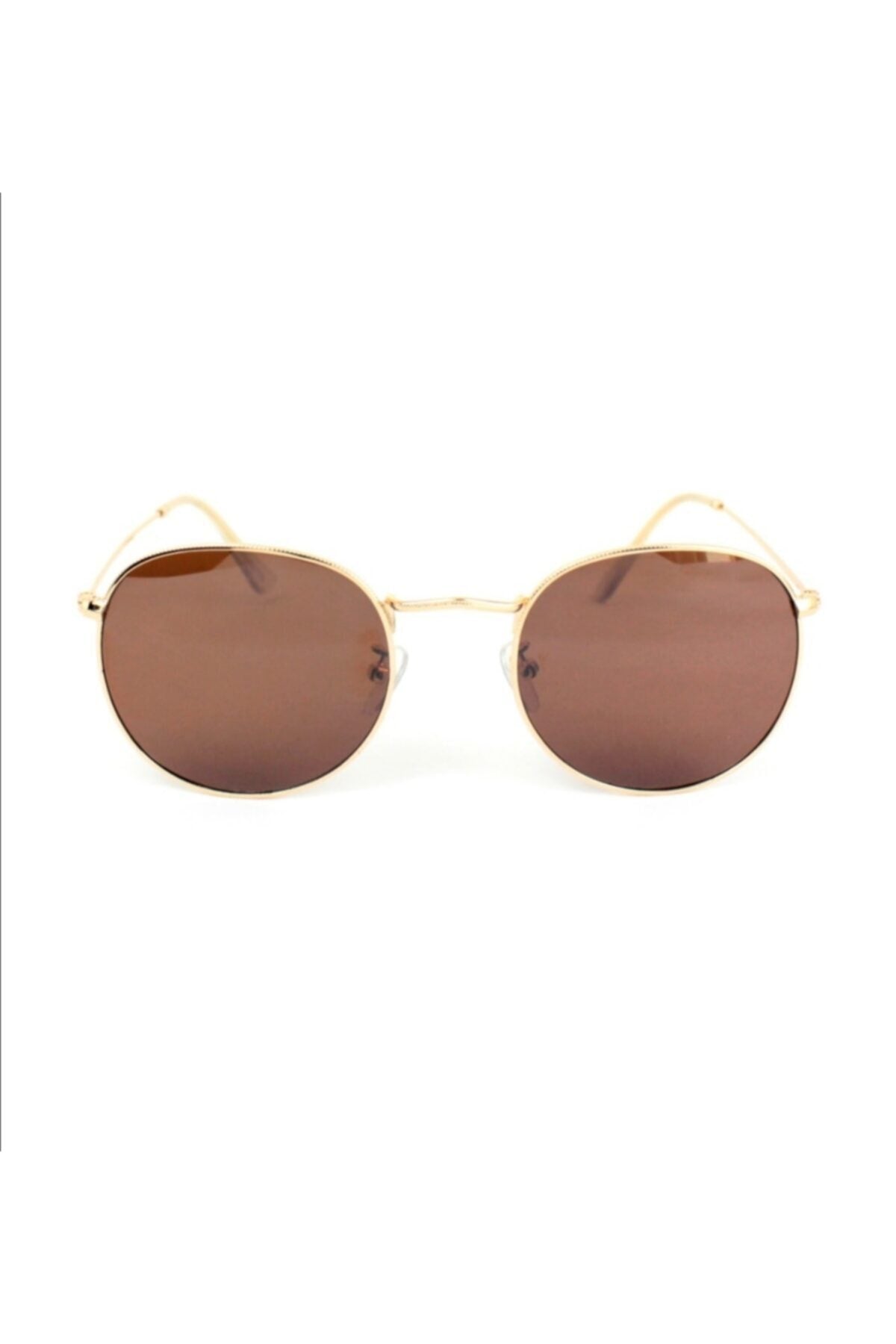 Kleine runde Unisex-Sonnenbrille mit goldenem Metallrahmen und Farbverlauf in Braun
