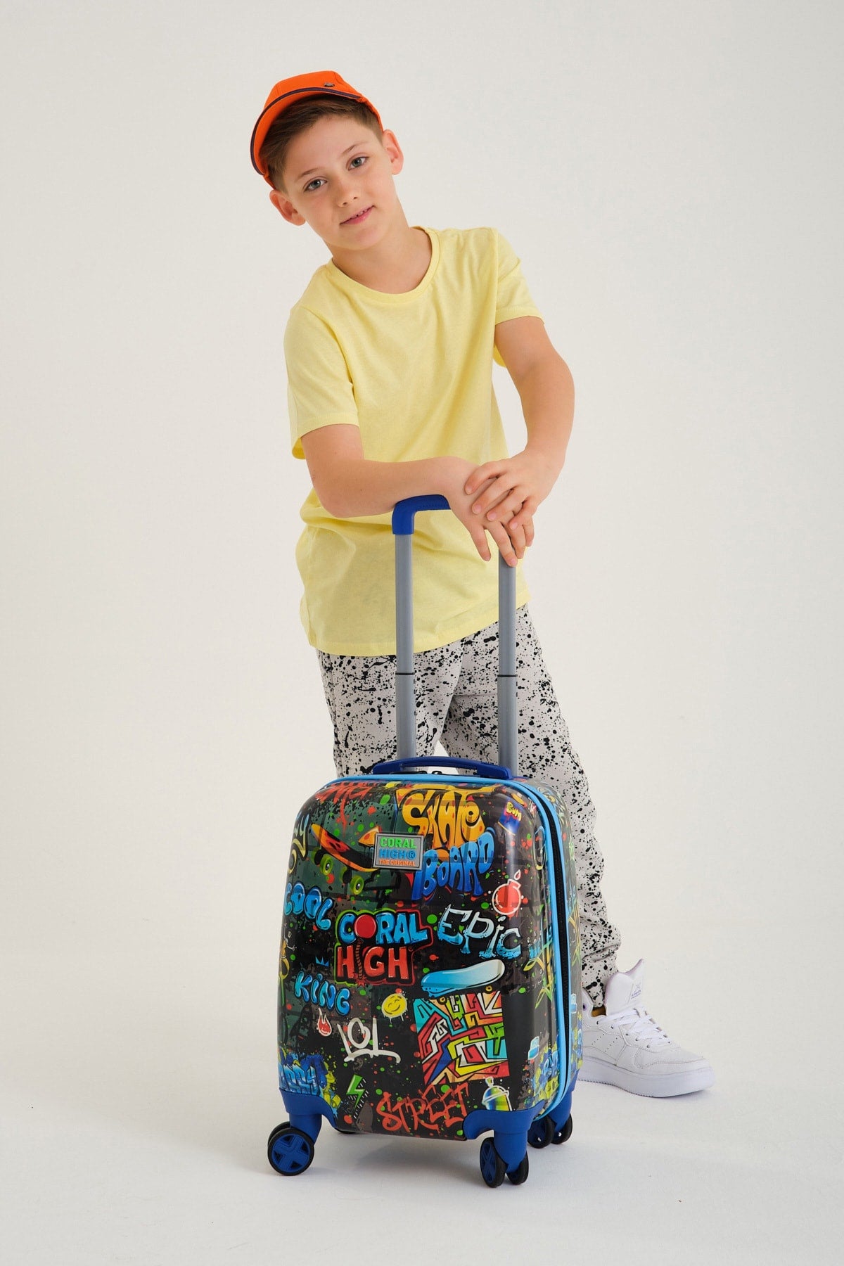 Kinderkoffer mit Graffiti-Muster, Schwarz/Blau, 16760