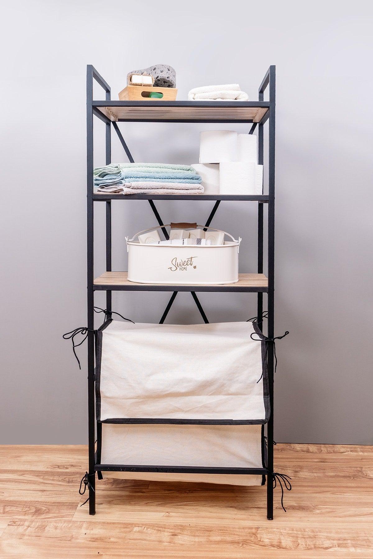 Metal Wooden Multi-Purpose Laundry Basket Material Cabinet Bathroom Shelf Storage Rack With Laundry Basket