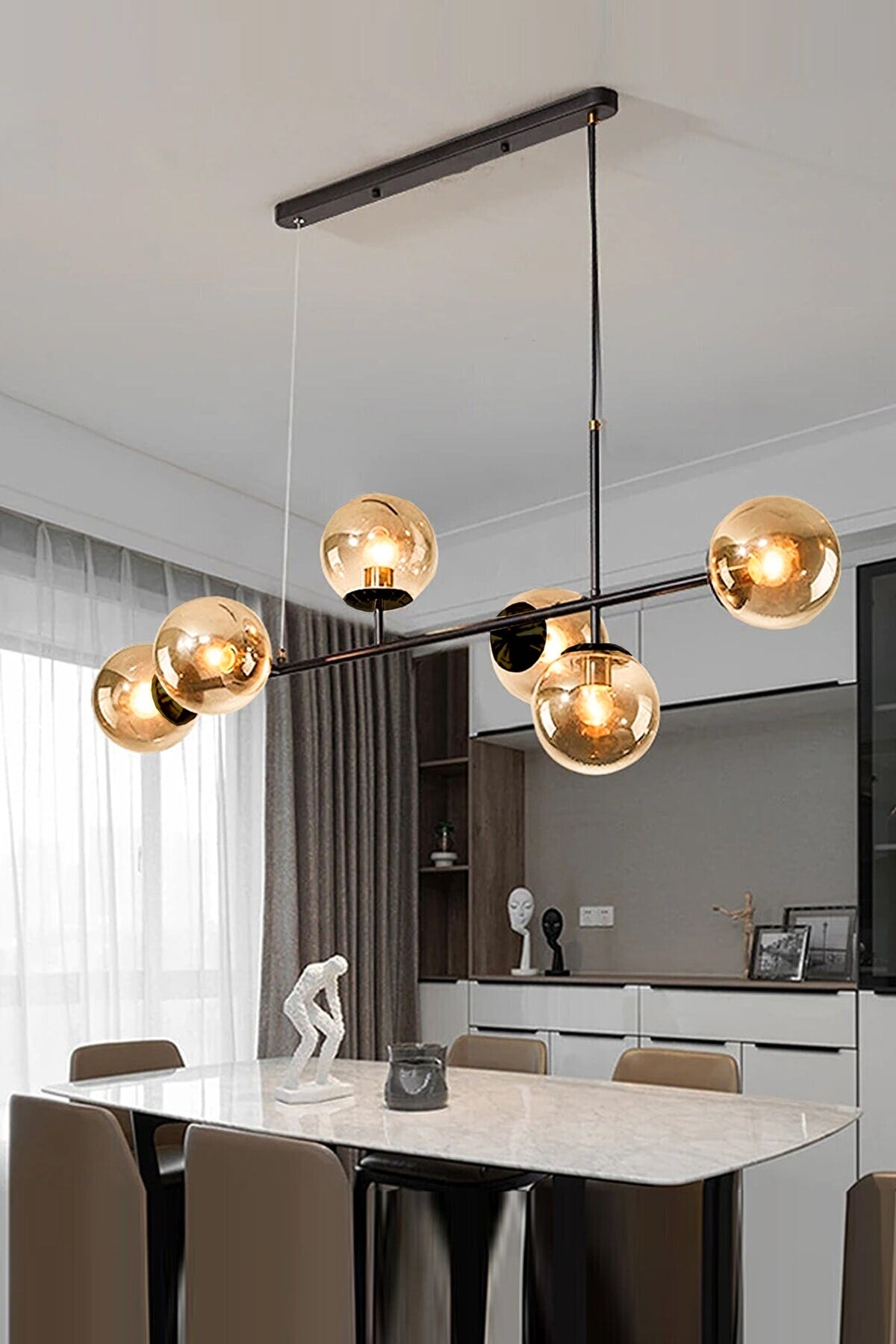 Simao Modernes Design Schwarz Farbe Honig Glas Wohnzimmer - Esstisch Top - Küche 6-teilig Kronleuchter