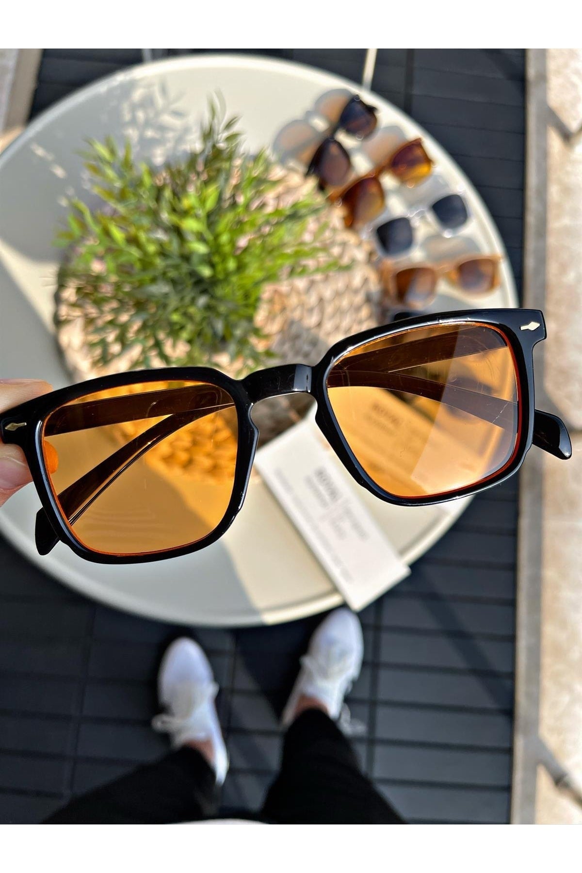 Sonnenbrille Damen & Herren UV400 Glas CE Zertifiziert Schwarz Orange Lorraınew