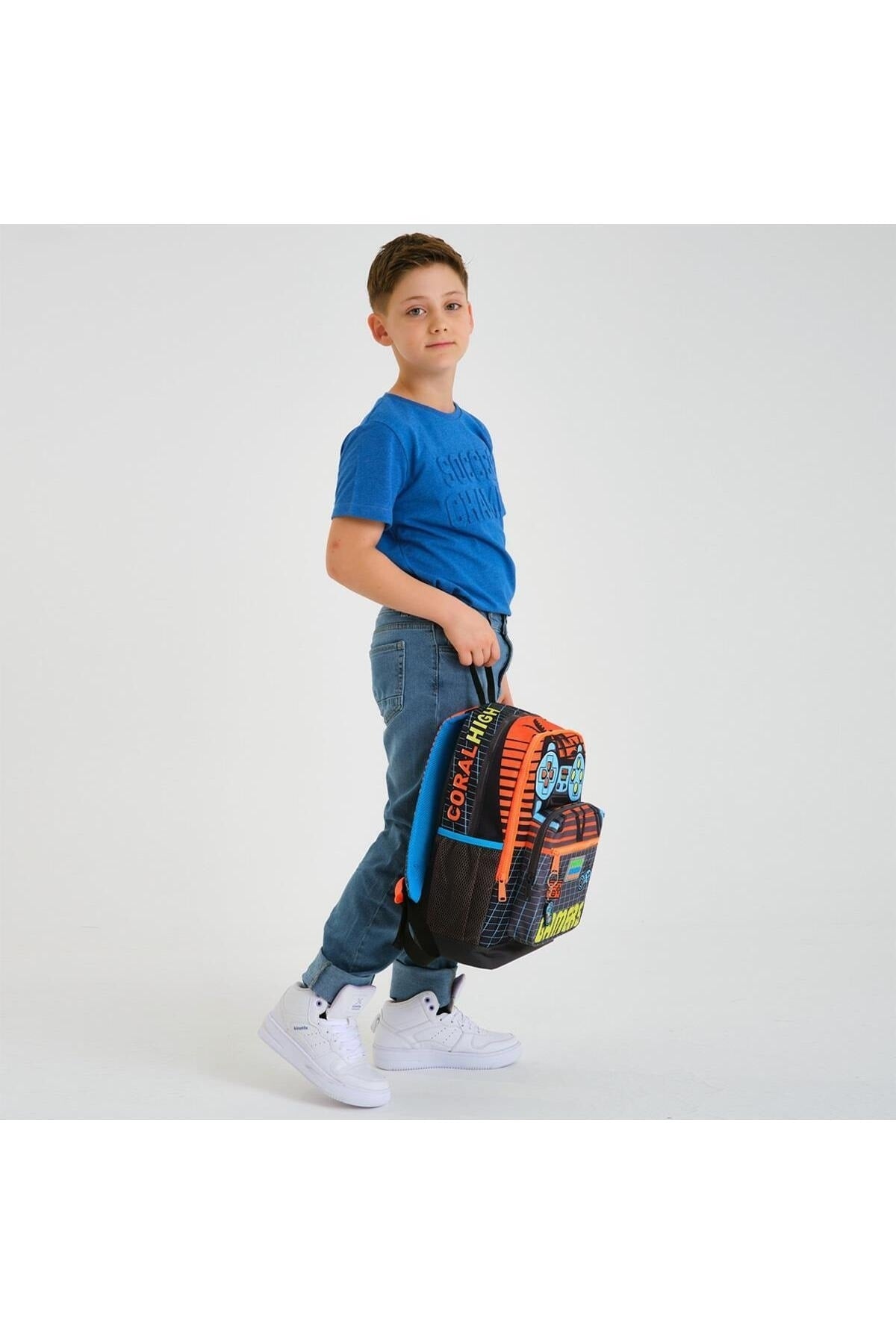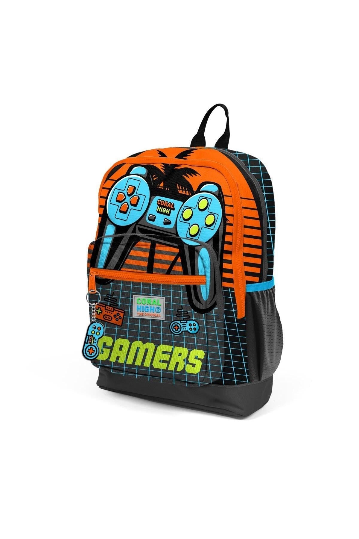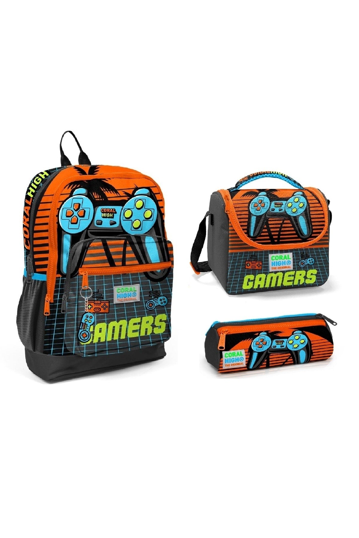 Kids Gray Orange Gamer Patterned 3-Pack School Bag Set