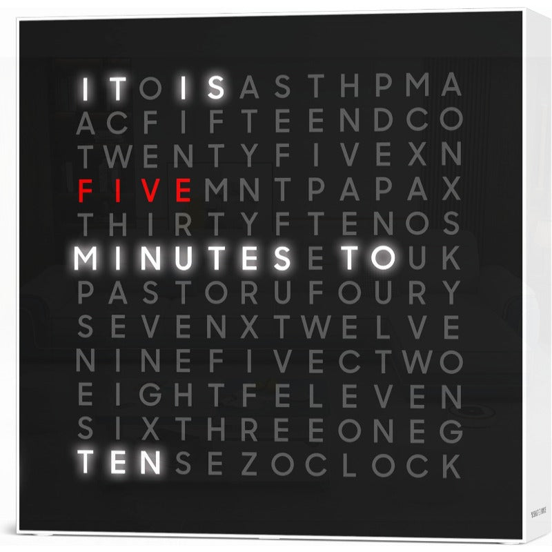 ® LED Word Clock Pro with Dimmable Light 9.45" Modern Design and Red 5Minute Alerts Electronic Accent Wall and Desk Clock Contemporary Home and Office Decor Housewarming Gift