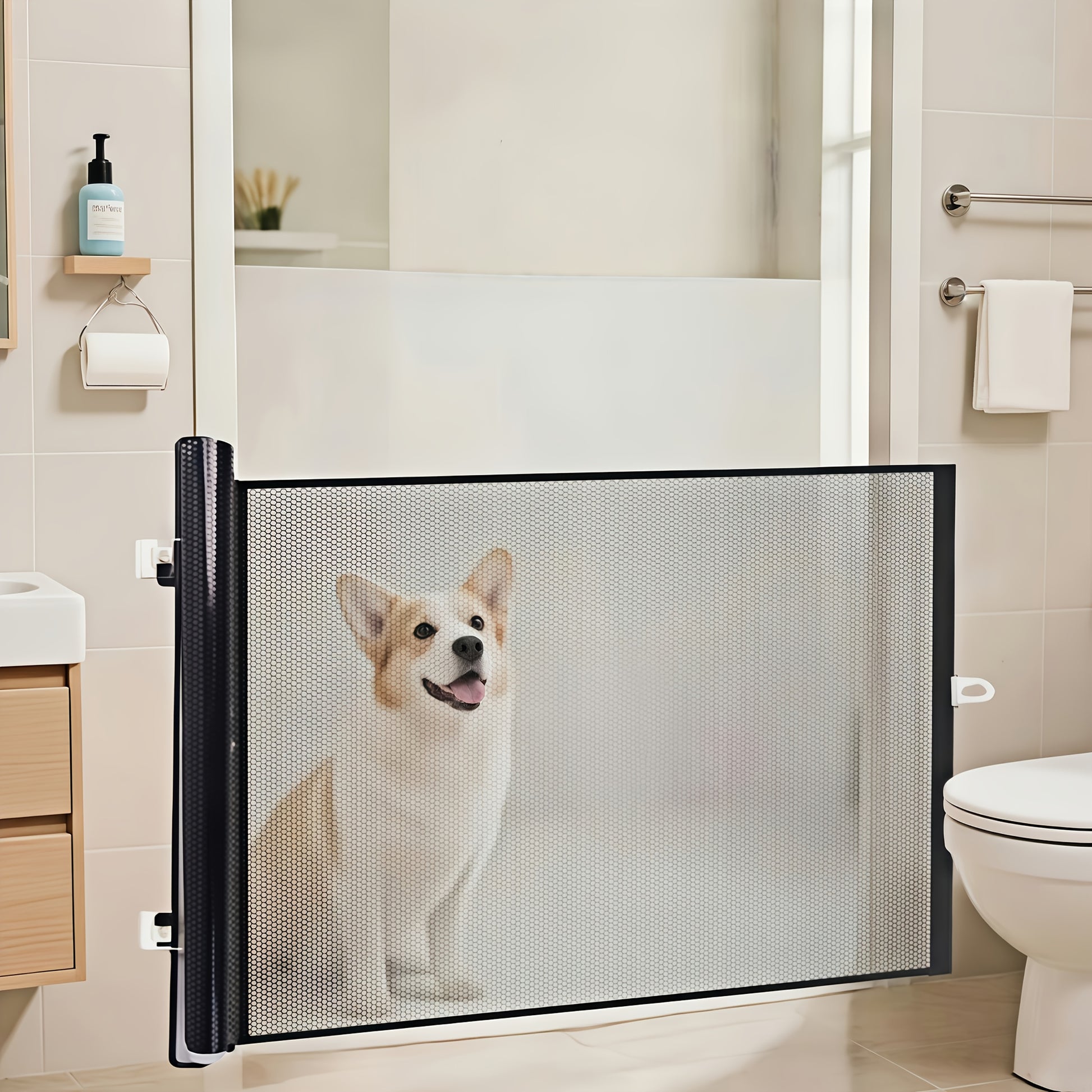 1 Heavy-duty Retractable Pet Fence - No Drilling Required, Foldable Dog Gate For Indoor/outdoor Use, Suitable For Puppies And Senior Dogs, Easy To Store & Carry, Flexible Mesh Design, Durable ABS