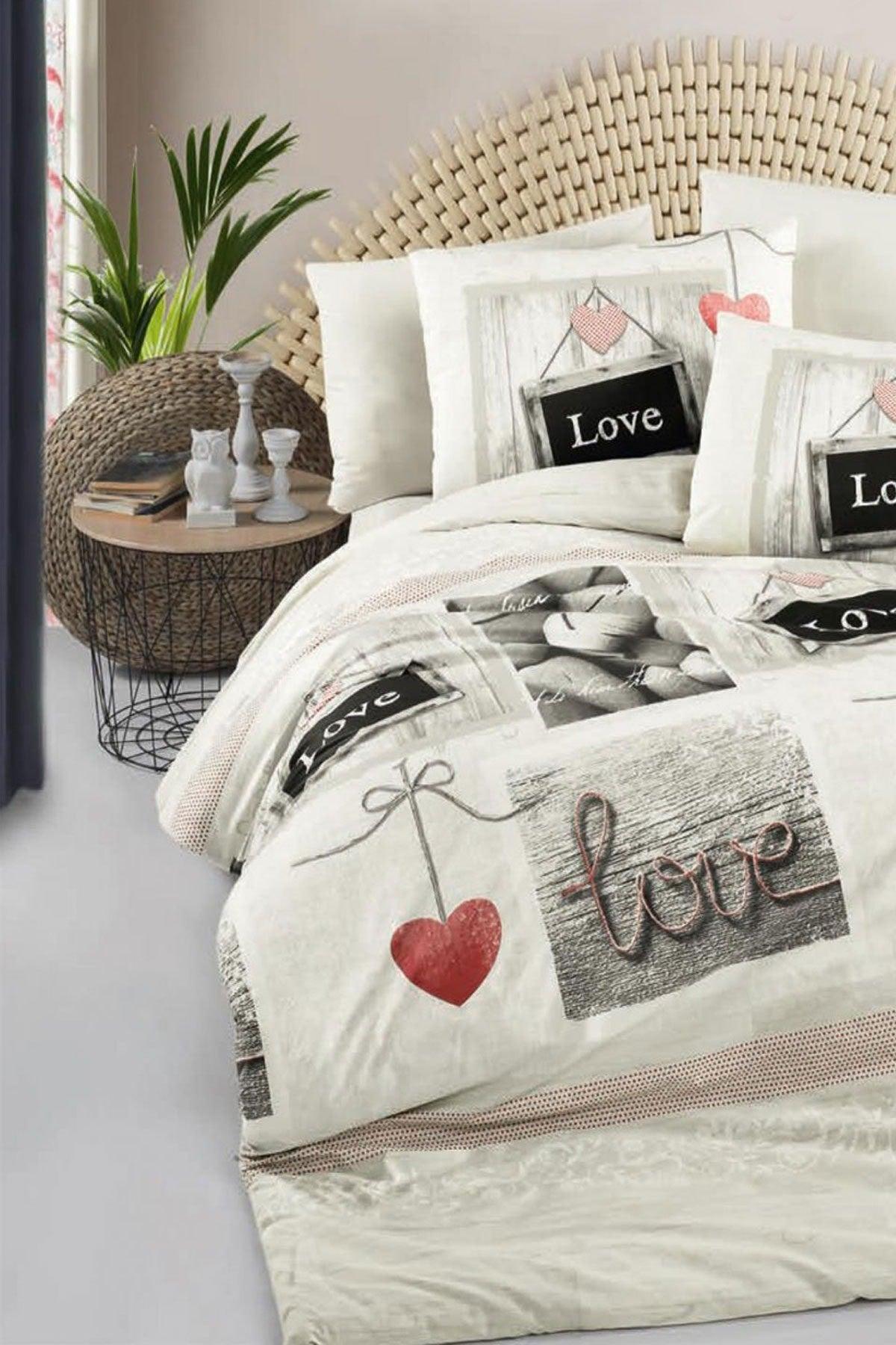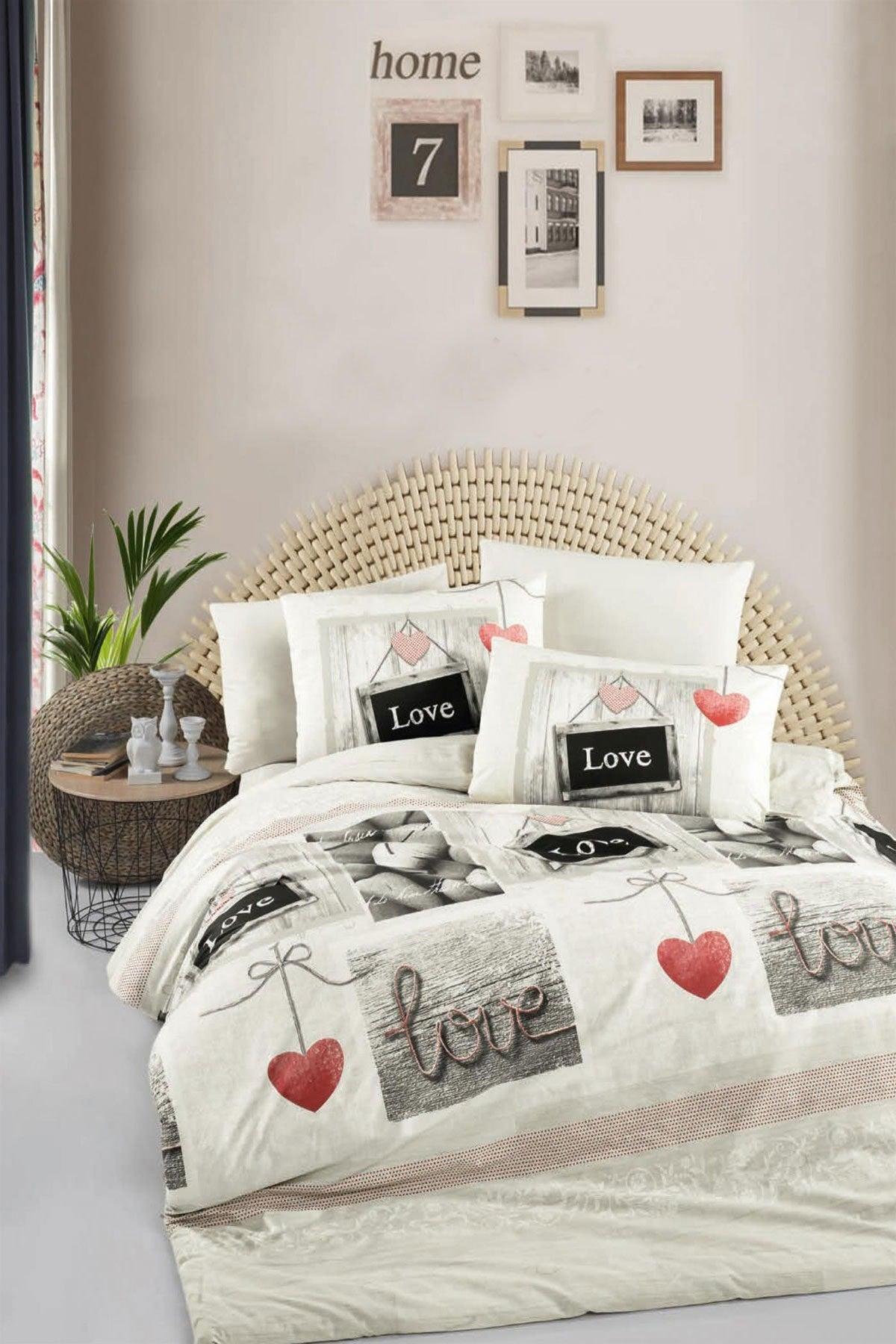 %100 Baumwoll Einzelmuster Ranforce Stoff Leinen Set - 160X220 Cm -