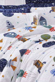 %100 Natural Cotton Pike Set Single Size Printed Spacex Navy