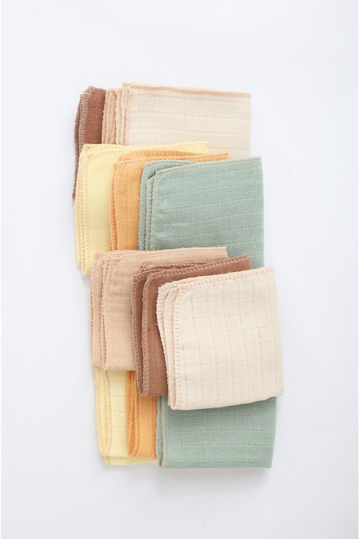 12 Pcs Muslin Mouth Wipes, Sweat Cloth Double Layer Sewn
