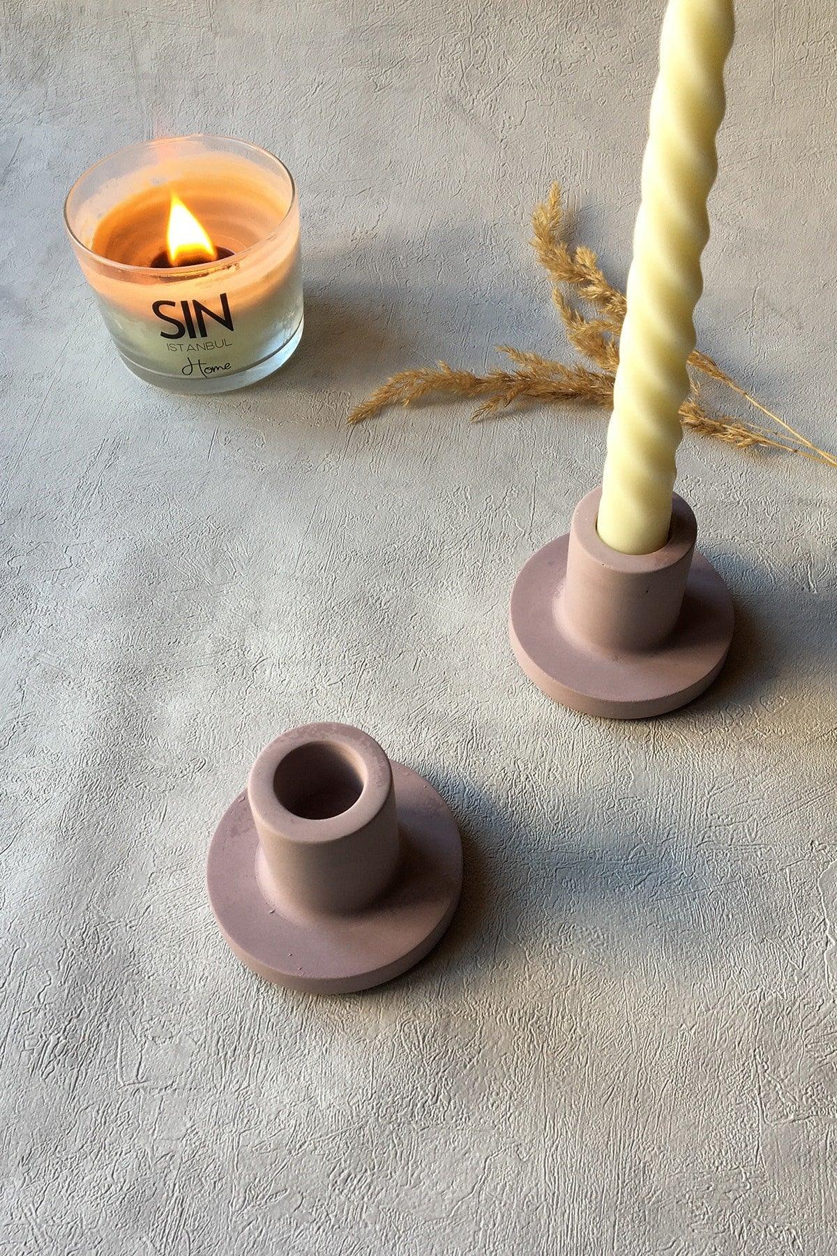 Package content: 2 pieces. the concrete candlesticks are molded to prevent surface wear. the surface has a smooth texture. due to its structure, very small air bubbles may be found on the product. the product is dyed according to its own color, so color flow, vomiting, etc. are not an issue. because it is entirely handmade, small differences in color may occur. our products are not made of cement, plasterboard, etc., and are called concrete due to its appearance and durability. these products are made with a special mixture called jesmonite. harmless, chemical-free, and environmentally friendly. accessories in the photo are not included. product dimensions: height 5.5 cm, base width: 7.5 cm Elegant candle with rich fragrance and stylish design. Suitable for home decor, gifts, or creating a peaceful atmosphere.