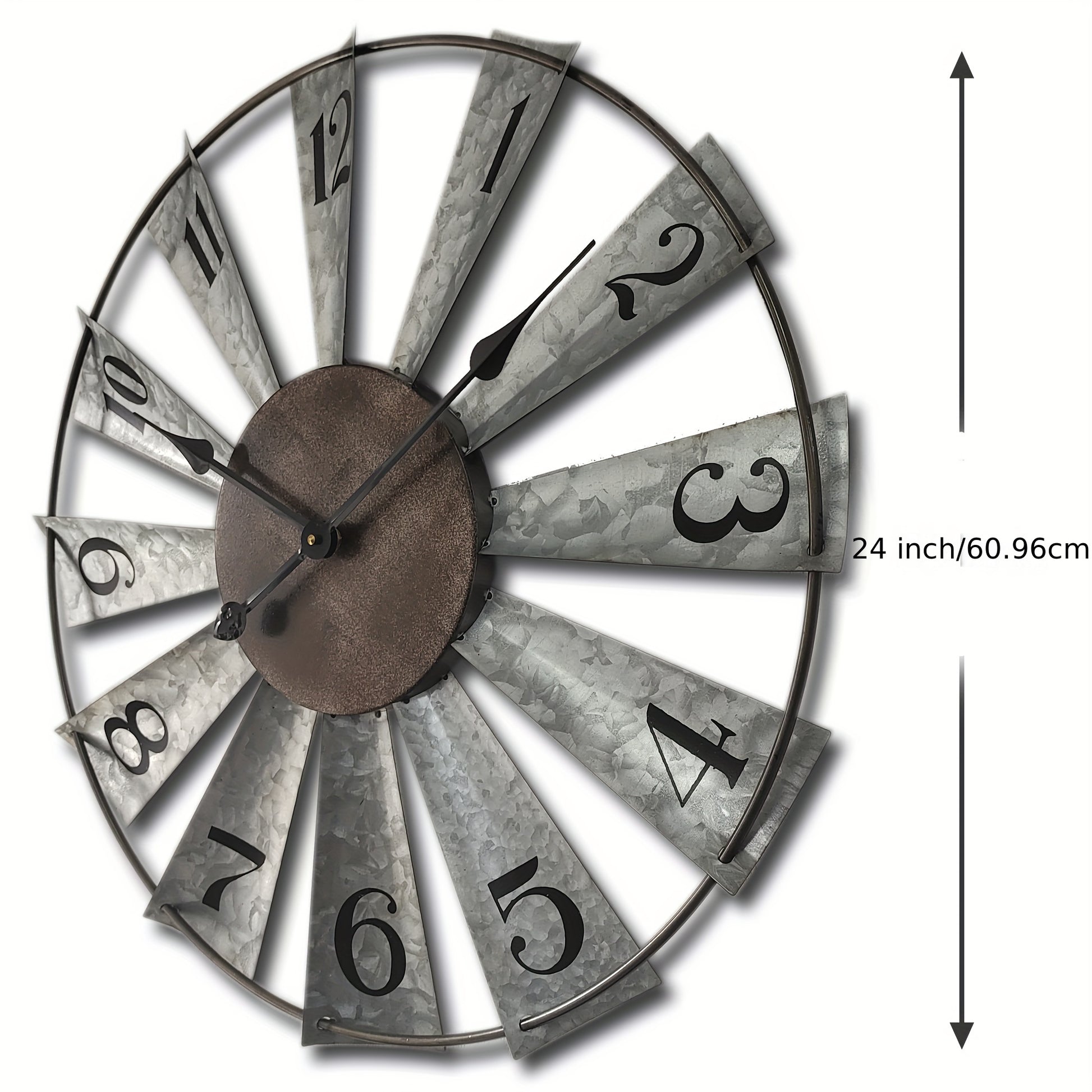 24inch Windmill Distressed Metal Wall Clocks Rustic Large Decorative Clock Oversized Farmhouse Decor, Non Ticking, Battery Operated