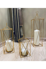 Metal 3 piece set decorative candle holders lantern gold color gold lanternslarge size handle height 64 cm width 17 cm candle chamber diameter 10 cm medium size handle height 50 cm width 15 cm candle chamber diameter 10 cm small size handle height: 33 cm width: 13 cm candle chamber diameter: 10 cm. maximum 10 pieces of this product can be ordered. swordslife reserves the right to cancel orders over 10 units. more than 100 stocks are offered to be sold at the campaign price. Elegant candle with rich fragrance and stylish design. Suitable for home decor, gifts, or creating a peaceful atmosphere.
