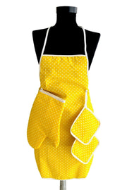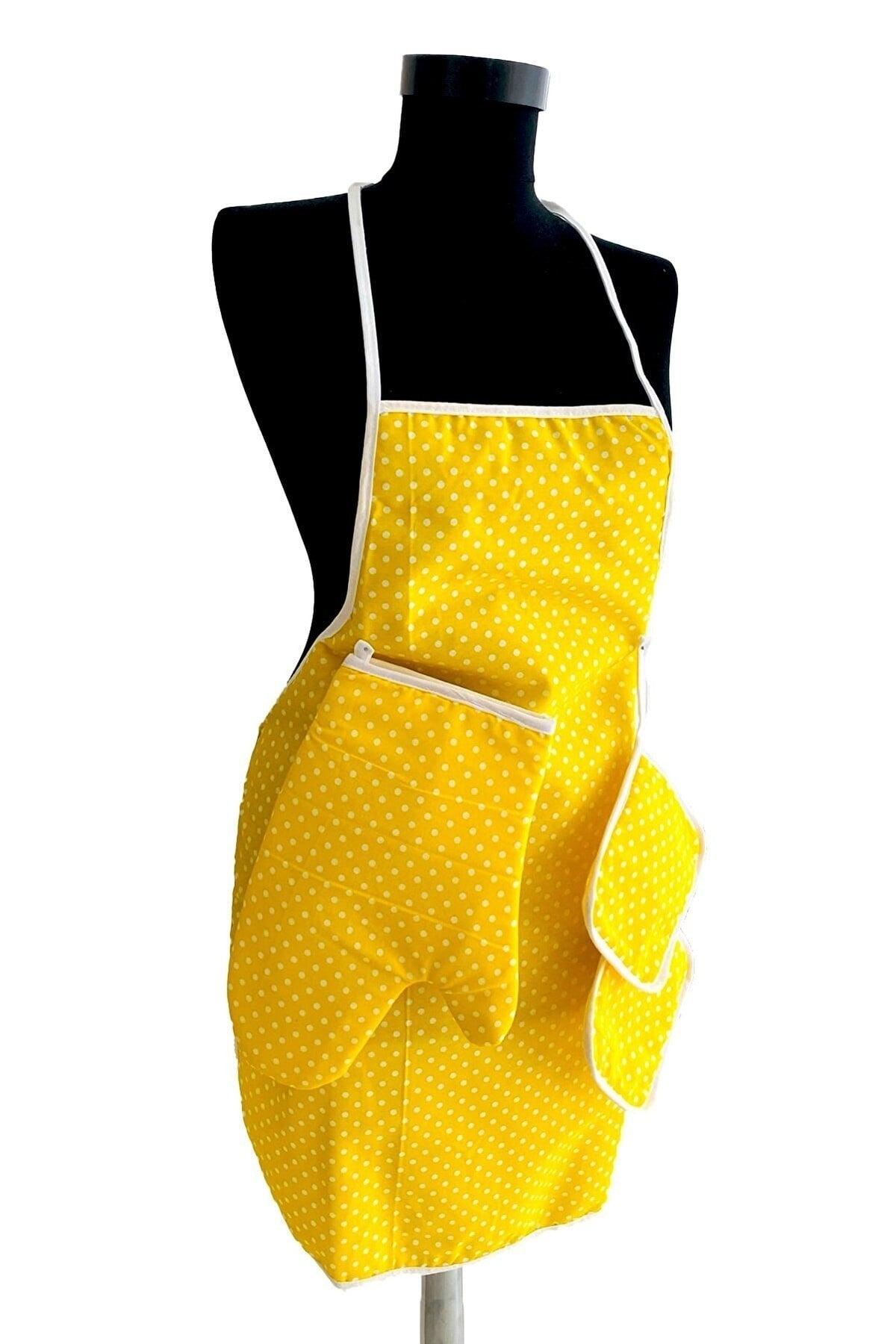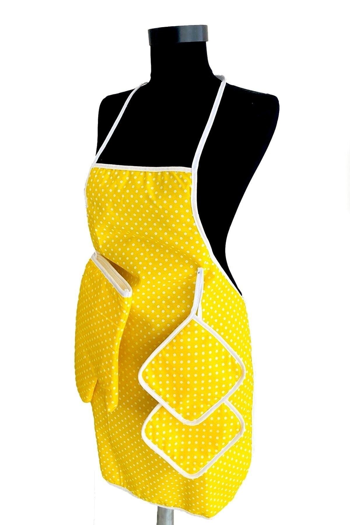 3 Pieces Yellow Kitchen Apron Set Waterproof Apron Heat Proof Gloves And Handle Set