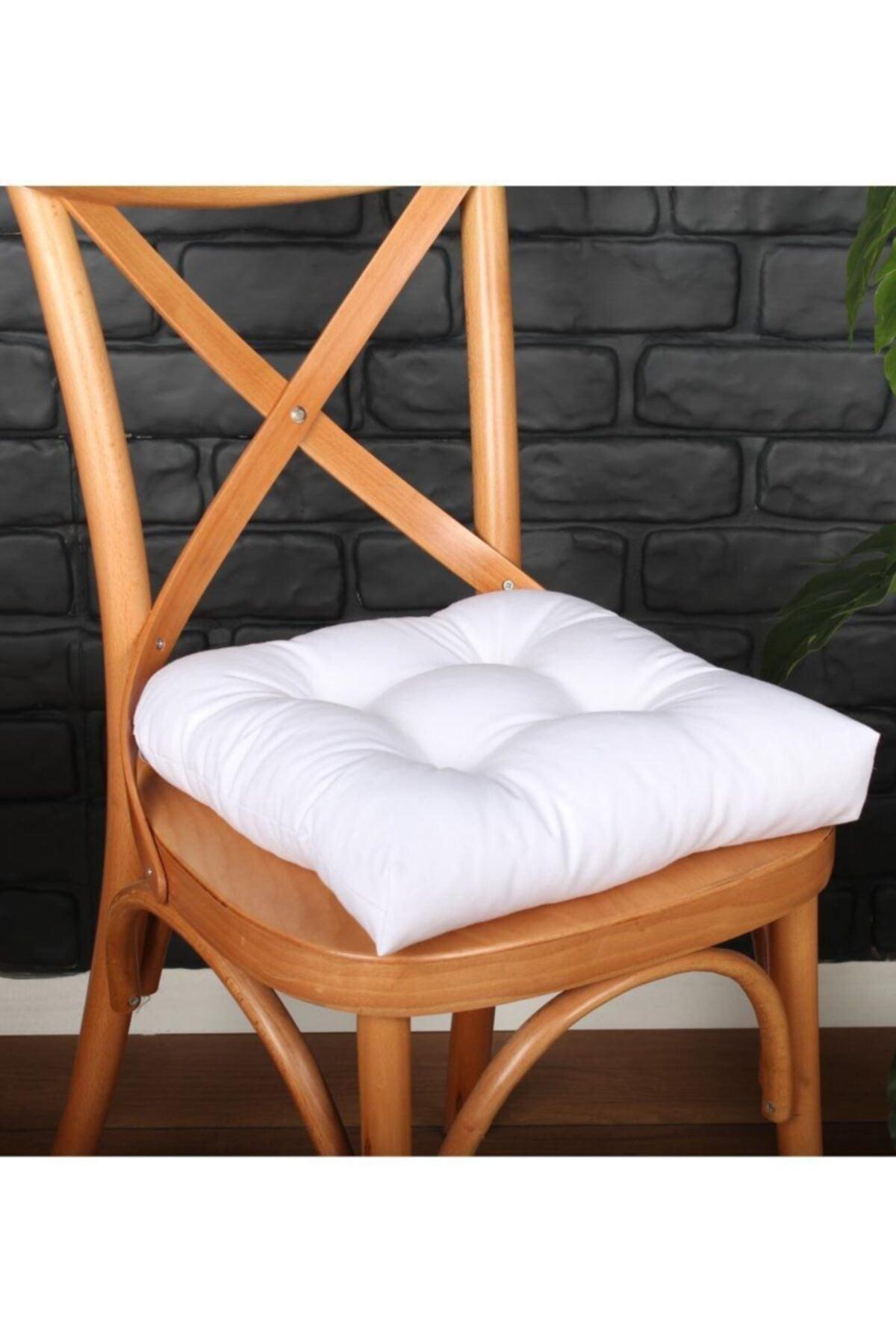 4 Pcs Lux Pofidik White Chair Cushion Special Stitched Laced 40X40Cm