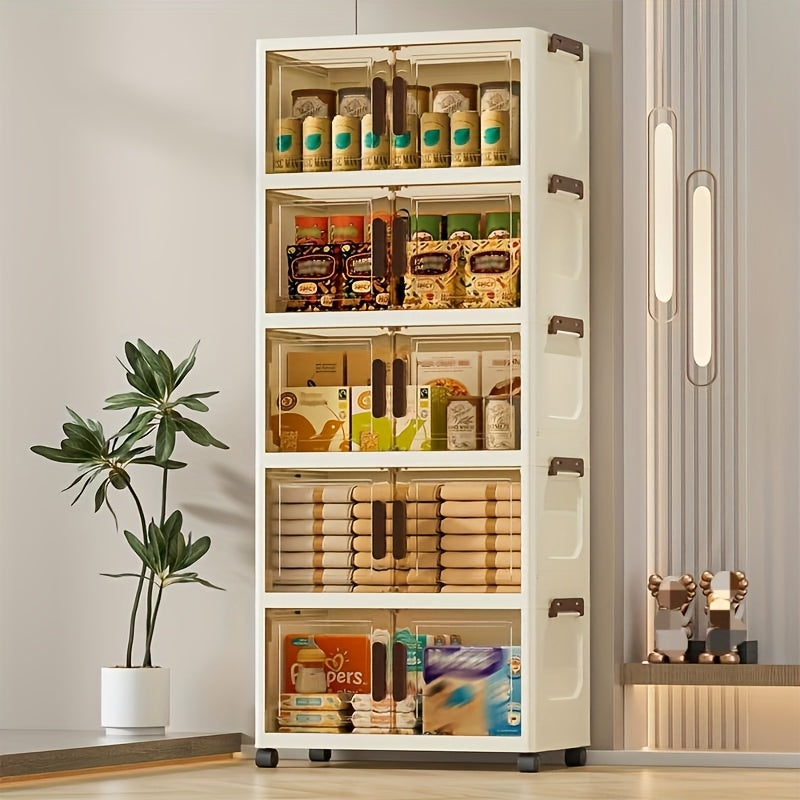 The 5-Pack Stackable Storage Bins with Rolling Drawers - Heavy-Duty Plastic Foldable Organizers with Magnetic Closure & Open Front Access, Space-Saving Vertical Design with Label Holders & Smooth-Rolling Casters for Home, Office, Pantry, Closet Organization - Multi-Purpose Organizer Containers, Kitchen Storage Cabinet, Kitchen Cabinet, Kitchen Unit, Kitchen Organizer And Storage, Collapsible Storage Container, Clothe Organizer Storage, Stackable Storage Bin With Door, Foldable Storage is designed for style and comfort, crafted with high-quality materials to ensure long-lasting wear. Perfect for everyday use or special occasions, it combines modern design with practicality. Whether you're dressing up or keeping it casual, this piece adds elegance and confidence to your look. Ideal for those who value both fashion and functionality in their wardrobe.