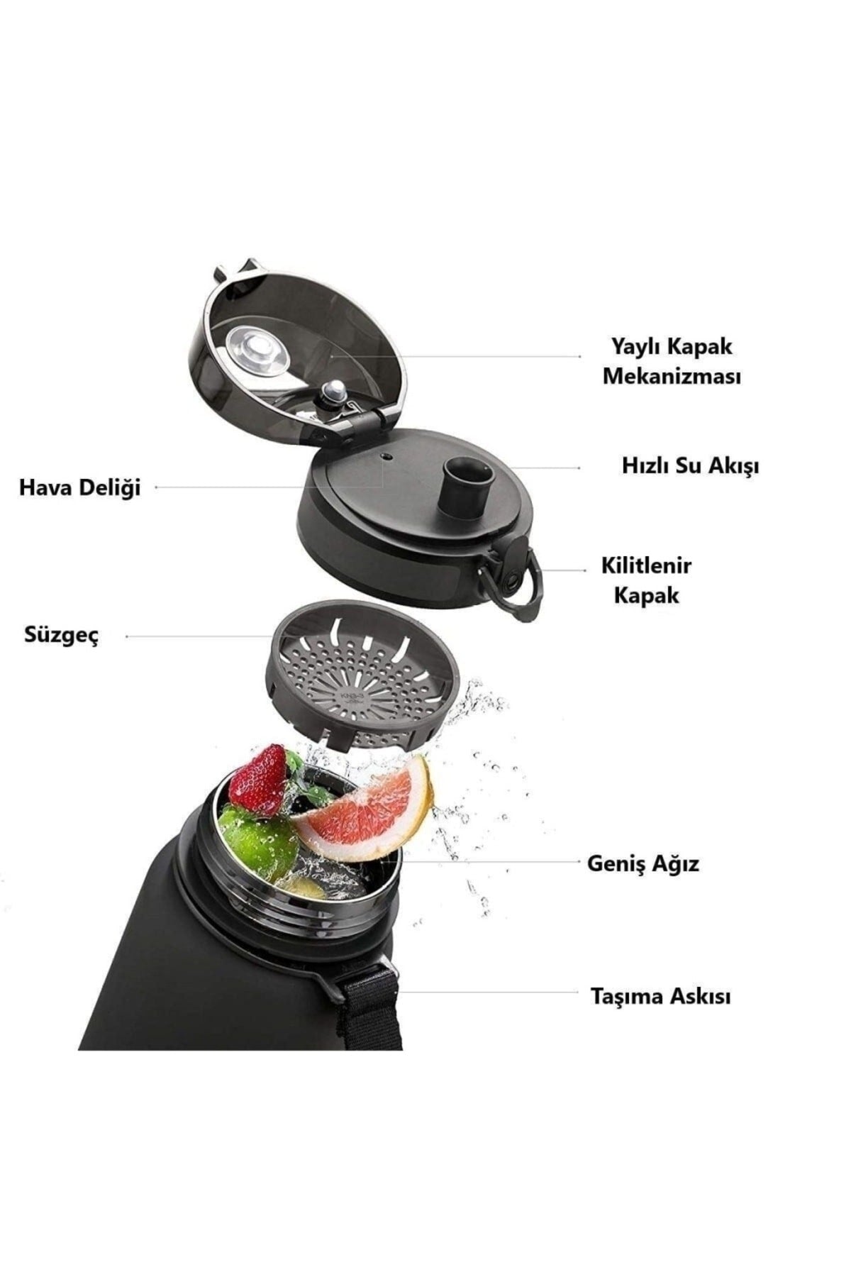 *not glass. tritan is plastic. * it does not smell. it is made of odorless tritan material. * does not leak. *bpa free. *it gives a soft touch feeling on the outer surface thanks to the impact-resistant body soft-touch technology. * does not slip when held with wet hands. * do not wash in the dishwasher. do not boil. it is suitable for hand washing. *there is a carrying strap. *it has a filter. *there is a measurement scale showing the liquid consumption. *it is recommended to wash by hand after each use and to keep the lid open when not in use. *does not leak thanks to the lid lock and the gasket on the lid. *there is no insulation feature. *after the product is purchased, the dehumidifier package should be discarded. Improved version for clearer understanding and better search visibility. Suitable for users seeking detailed and reliable product information.
