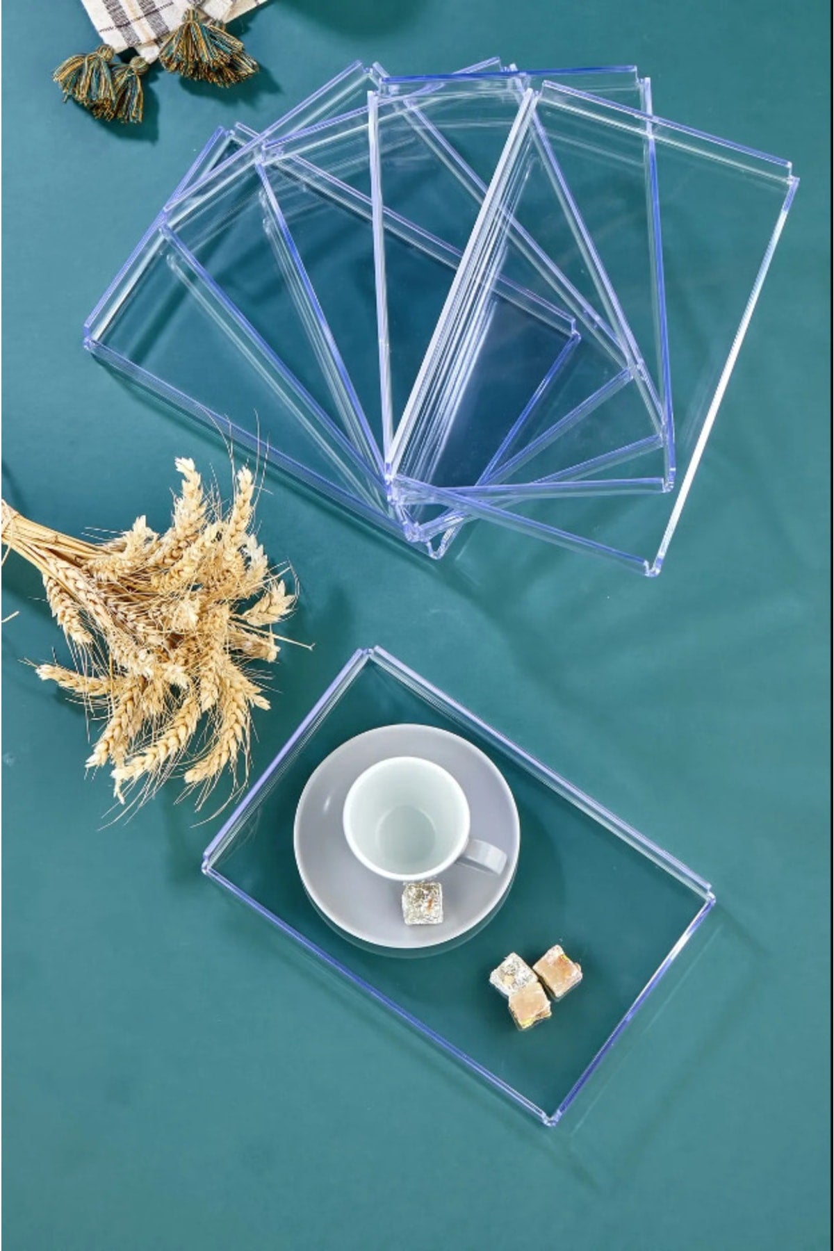 Çavdar group 6 pcs crystal presentation tray - transparent coffee presentation 6 pcs decorative special series trays product dimensions: width : 15 cm length : 22.50 cm height : 2.5 cm package contents: 6 pcs transparent serving trays Improved version for clearer understanding and better search visibility. Suitable for users seeking detailed and reliable product information.
