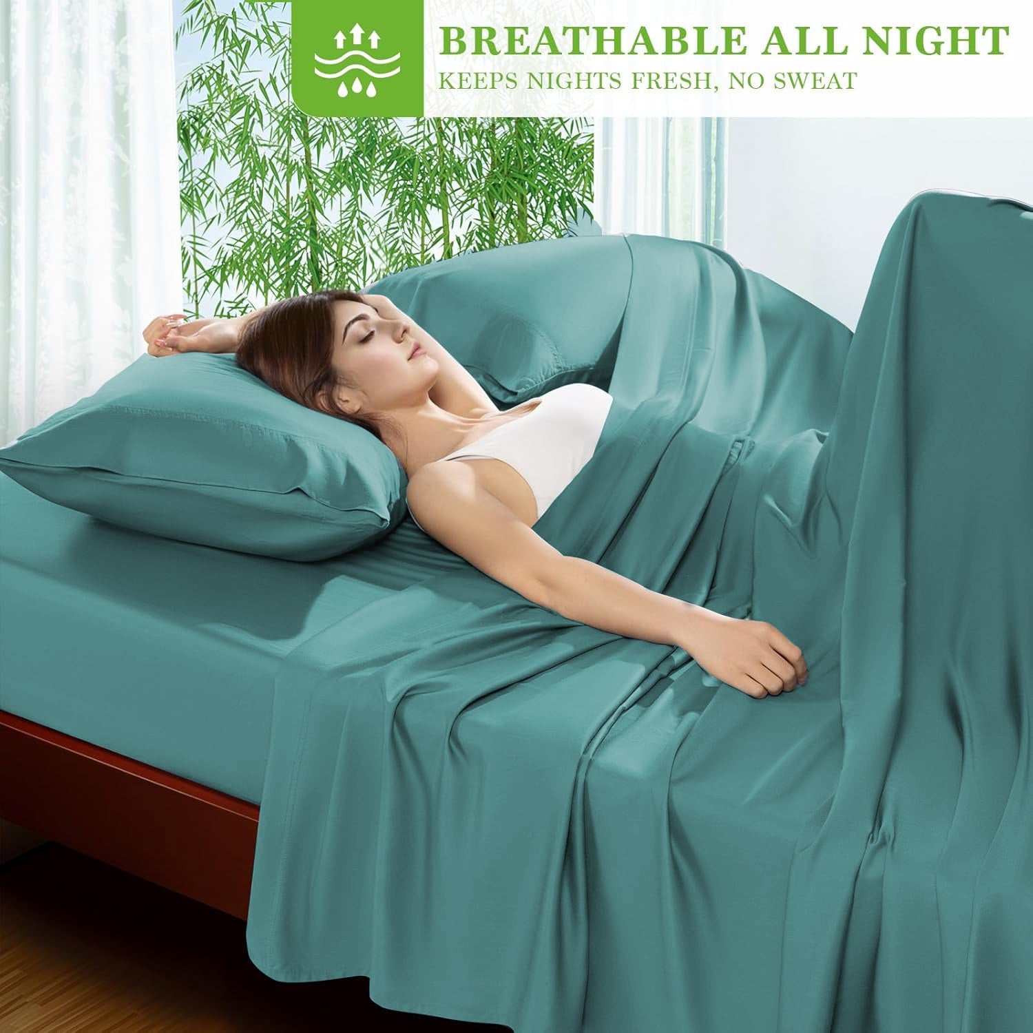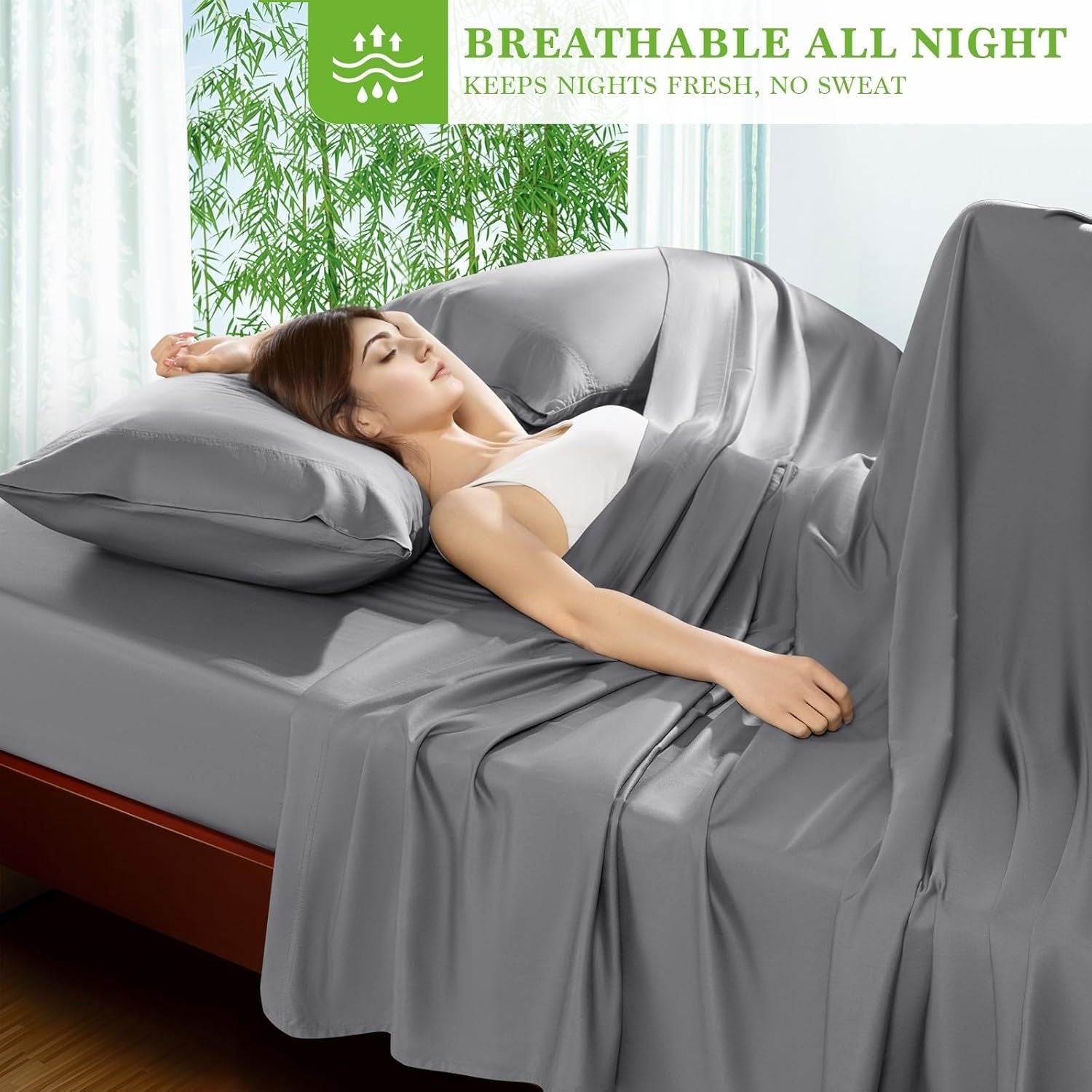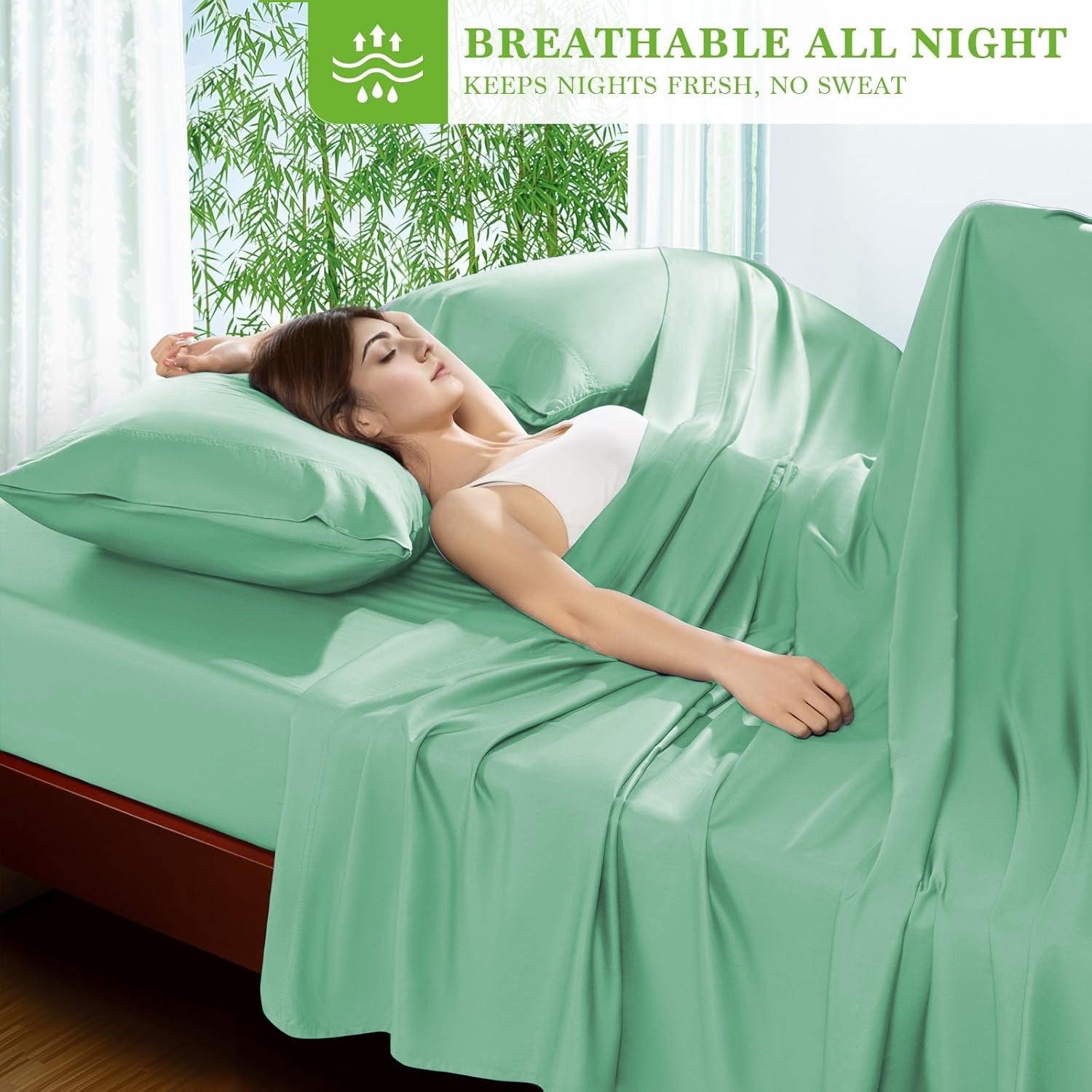 6pcs Bamboo Bed Sheet Set - 100% Viscose Derived From Bamboo - Ultra Soft & Luxuriously Cooling Bed Sheets - Deep Pocket Up to 16" - Hotel Silky Bedding Set - Perfect for Hot Sleepers, Bamboo Bed Shee