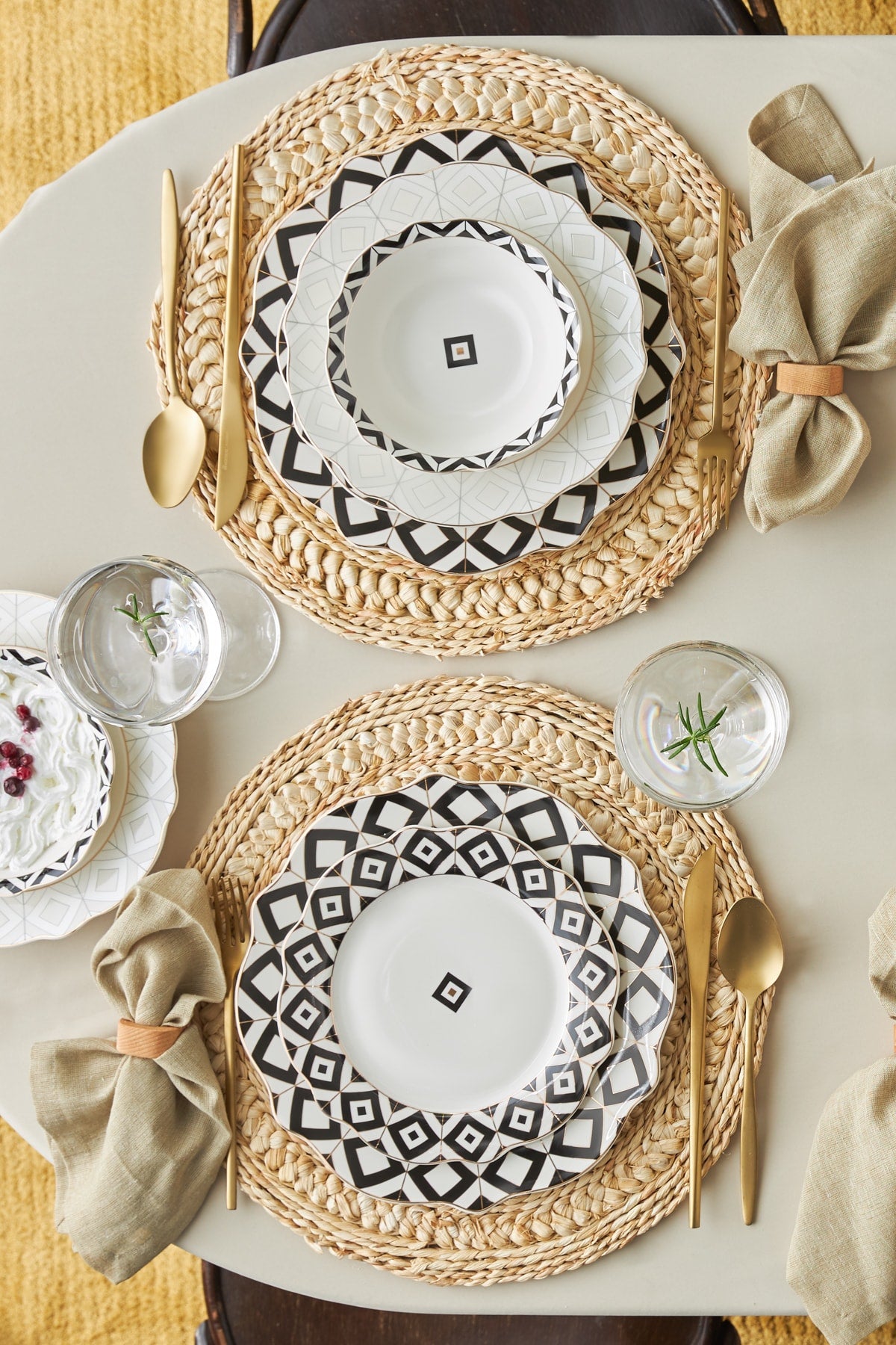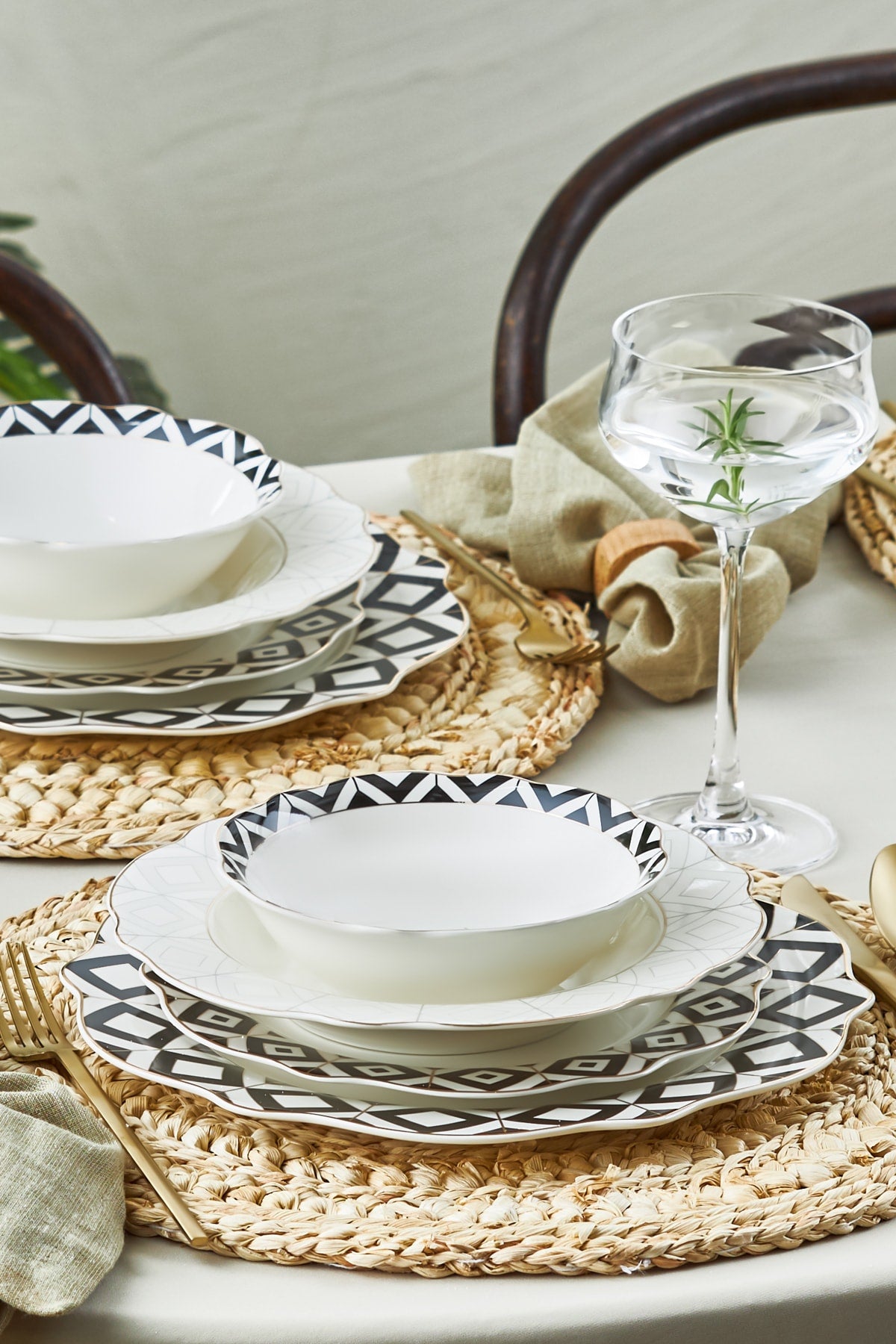 Karaca almond ethnic porcelain 24 pieces dinnerware set for 6 persons set contents 6 pieces serving plates (27 cm)6 pieces deep plates (21.5cm)6 pieces of cake plates (21cm)6 pieces of bowls (15cm)material: porcelain Improved version for clearer understanding and better search visibility. Suitable for users seeking detailed and reliable product information.