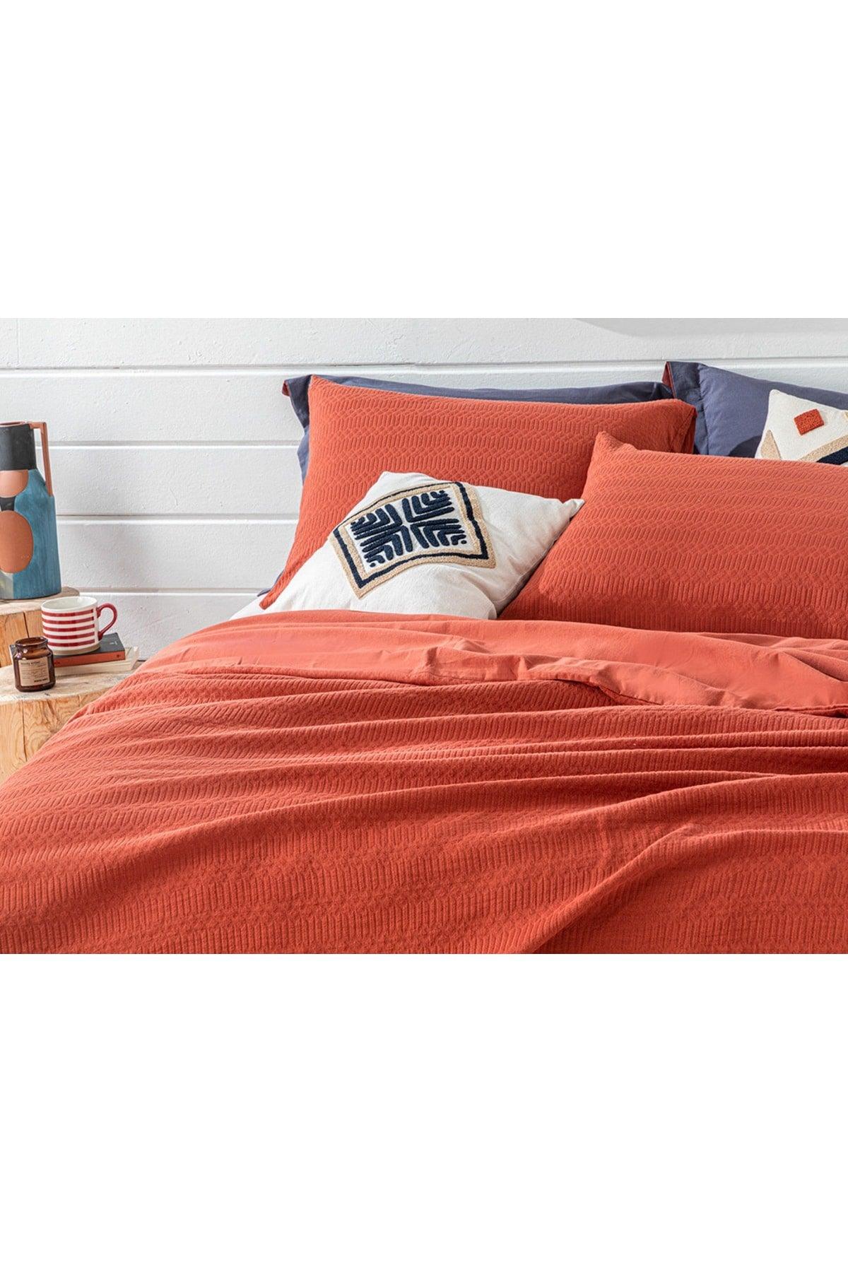Ancient Diamond Embossed Jacquard Double Duvet Cover Set 200X220 Cm Terracotta