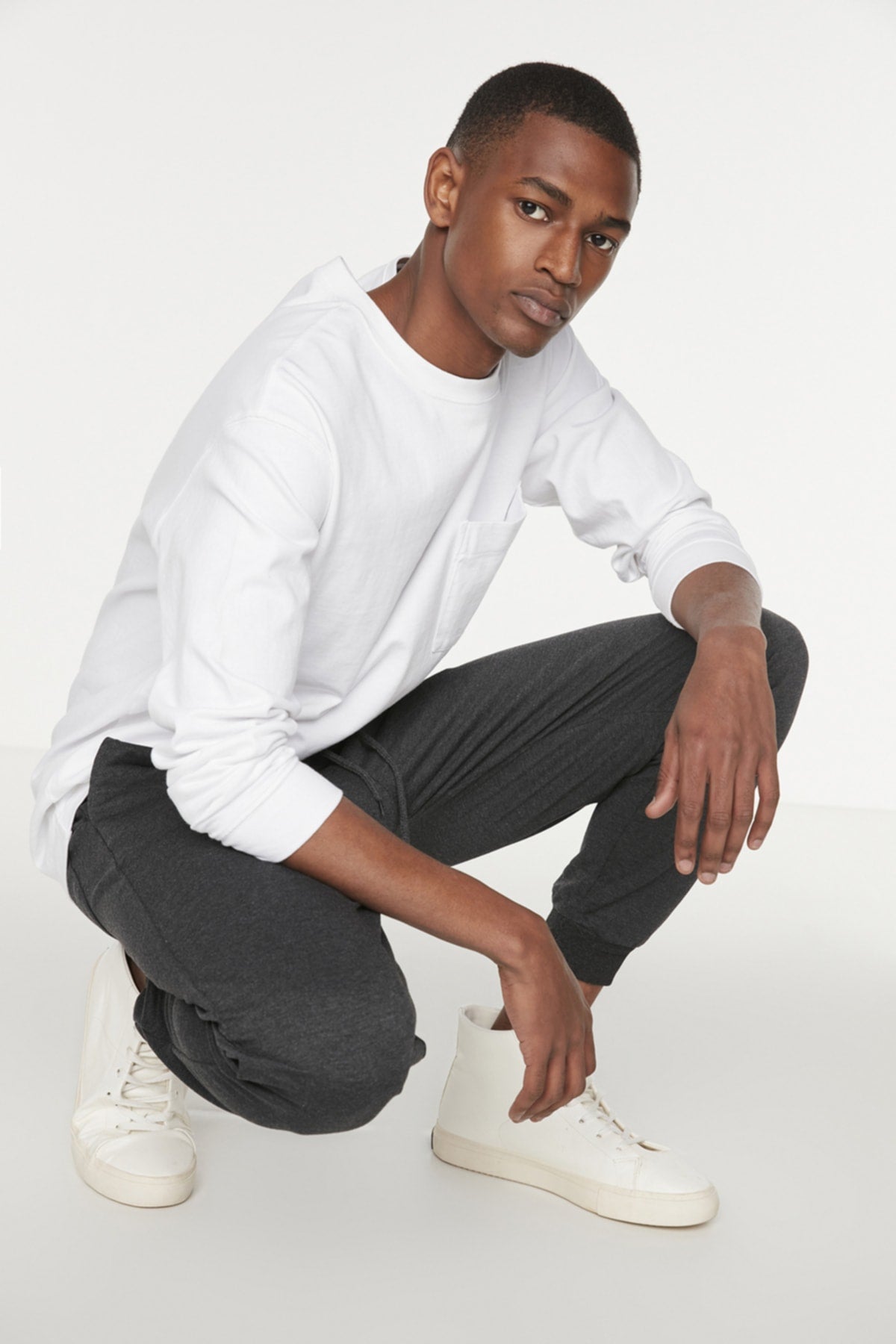 Anthracite Men'S Basic Regular/Normal Cut Elastic Jogger Sweatpants Tmnss20Ea0053