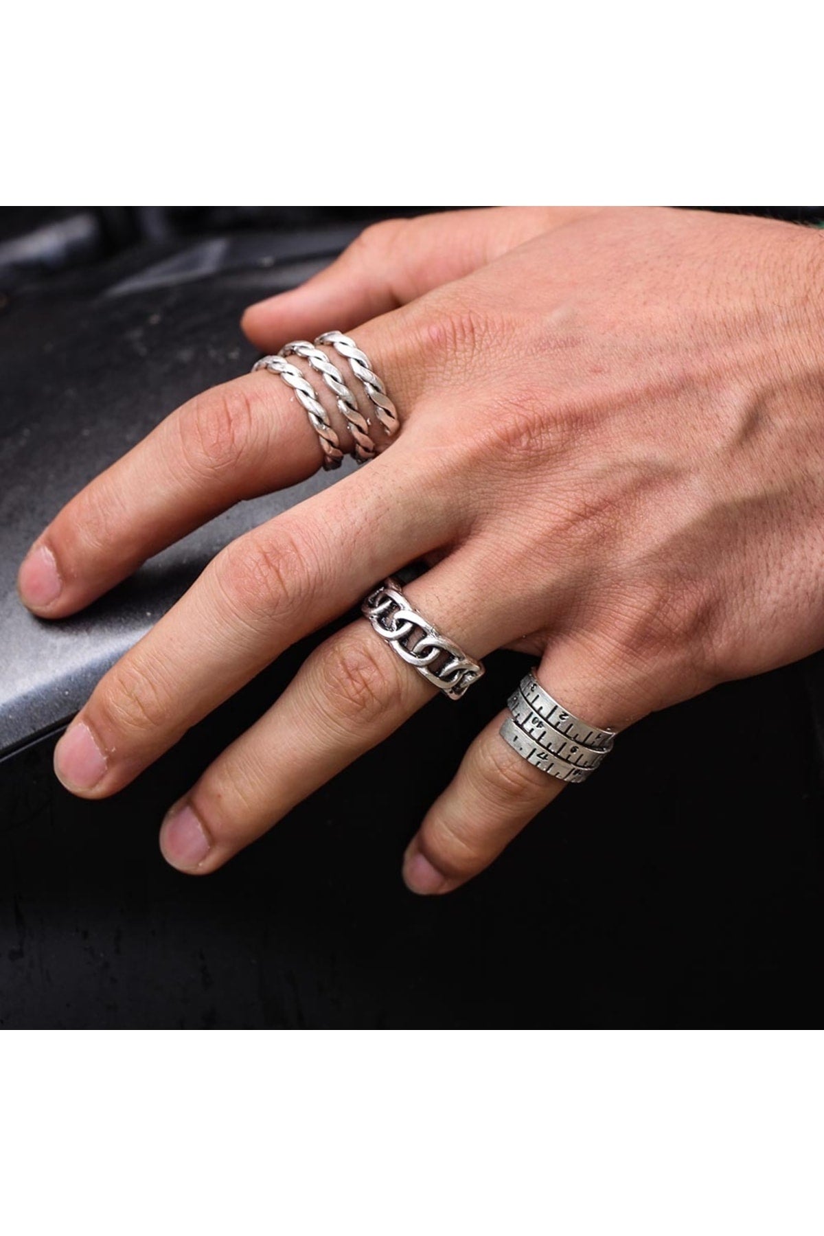 Antique Silver Plated Adjustable Model 3 Piece Men'S Ring Set