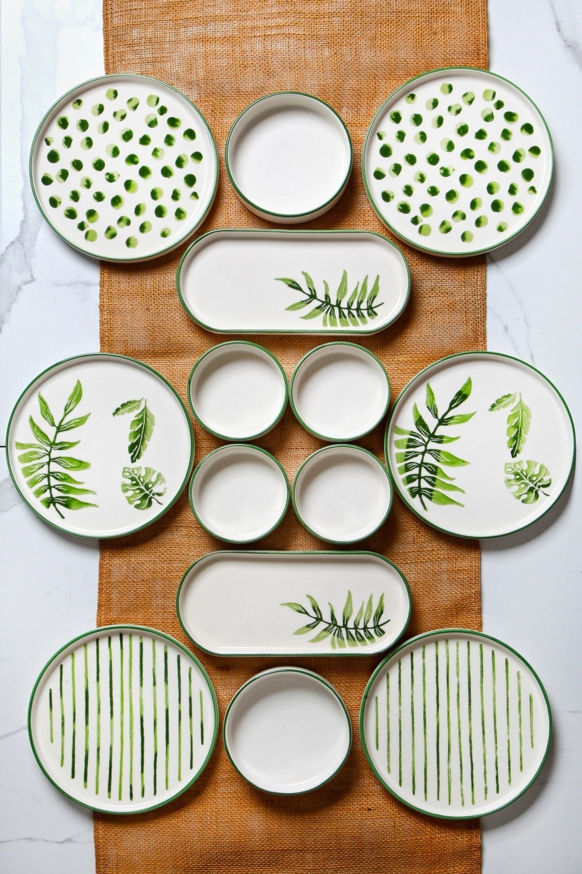 Art Botanik 14 Pcs Stackable Breakfast Set For 6 Persons - Luxurious Breakfast Serving Set Plate