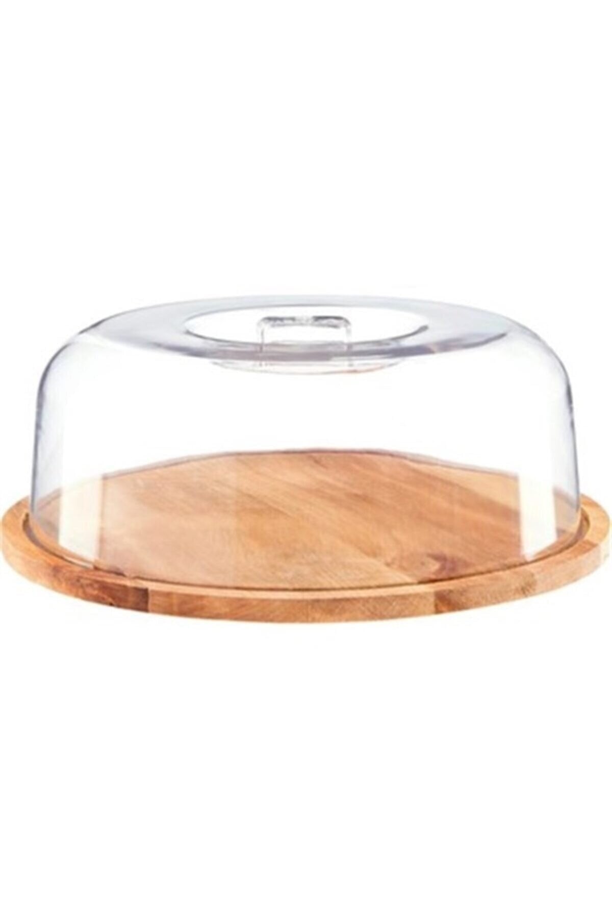 Bamboo Wooden Hard Plastic Cover Cake Dish Dome